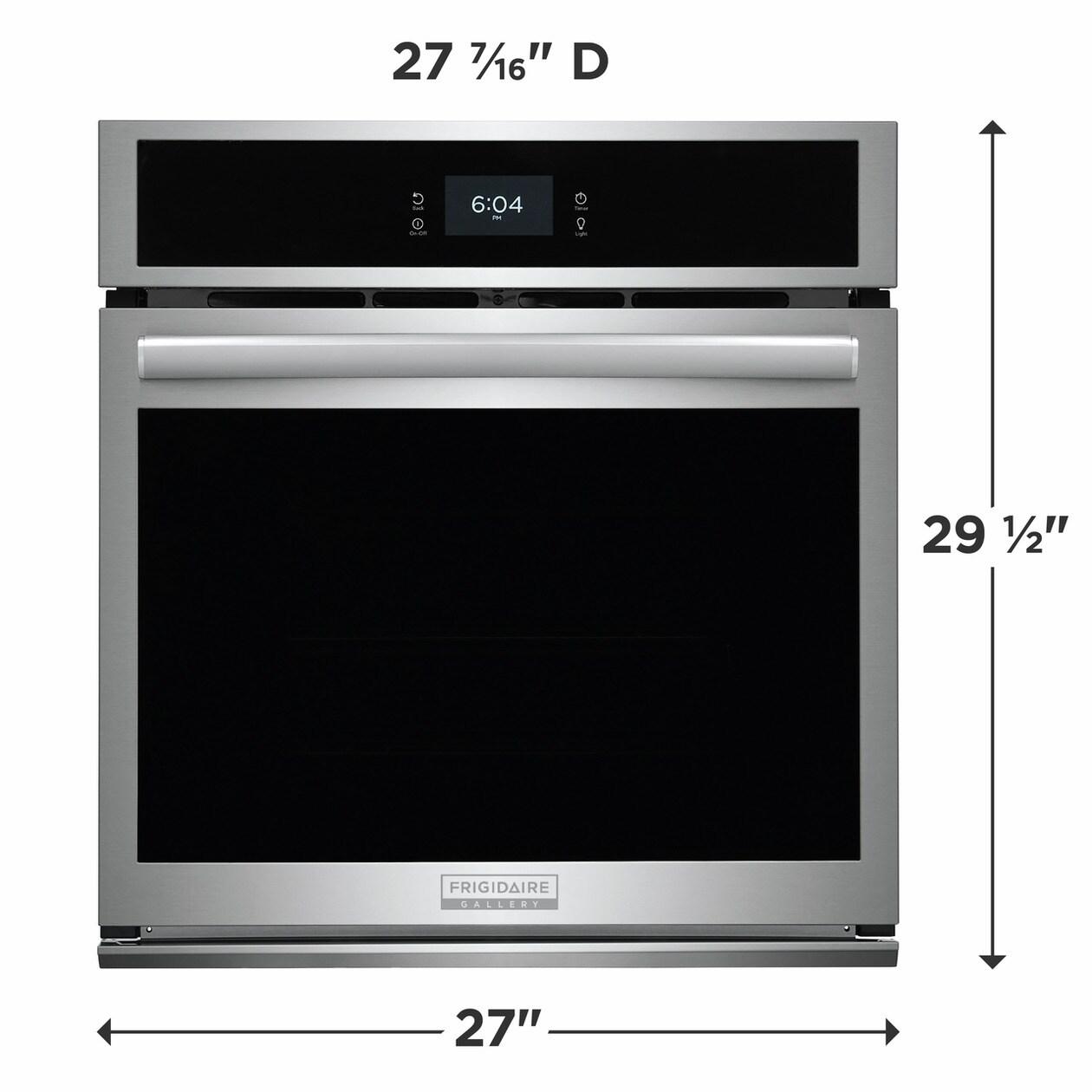 The Frigidaire GCWS2767AF 27-Inch Single Electric Wall Oven offers powerful and flexible performance with a sleek built-in look. Powered by Total Convection, it enables a range of cooking modes—including Air Fry, Steam Bake, Slow Cook, and Convection Roast—all in one appliance. The No Preheat feature gets meals started faster, while the Air Fry function delivers crispy results with less oil. A large 3.8 cu. ft. capacity and glide rack system allow for convenient loading of heavy dishes. The smudge-proof stainless steel exterior resists fingerprints for a consistently clean look, and bright halogen interior lighting provides clear visibility. With a sleek touch screen control panel and self-cleaning options including Steam Clean, this oven delivers both luxury and practicality to meet a variety of cooking needs.