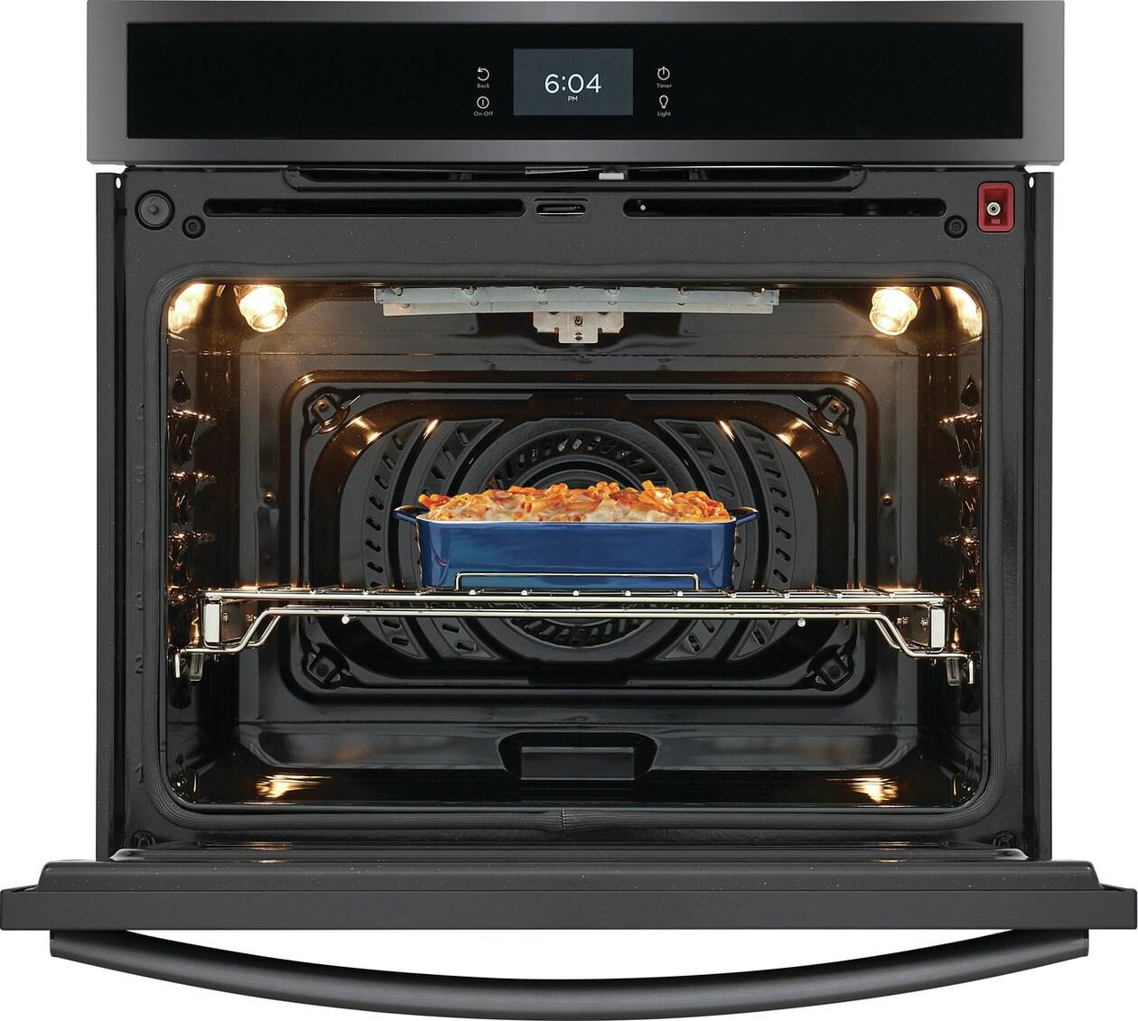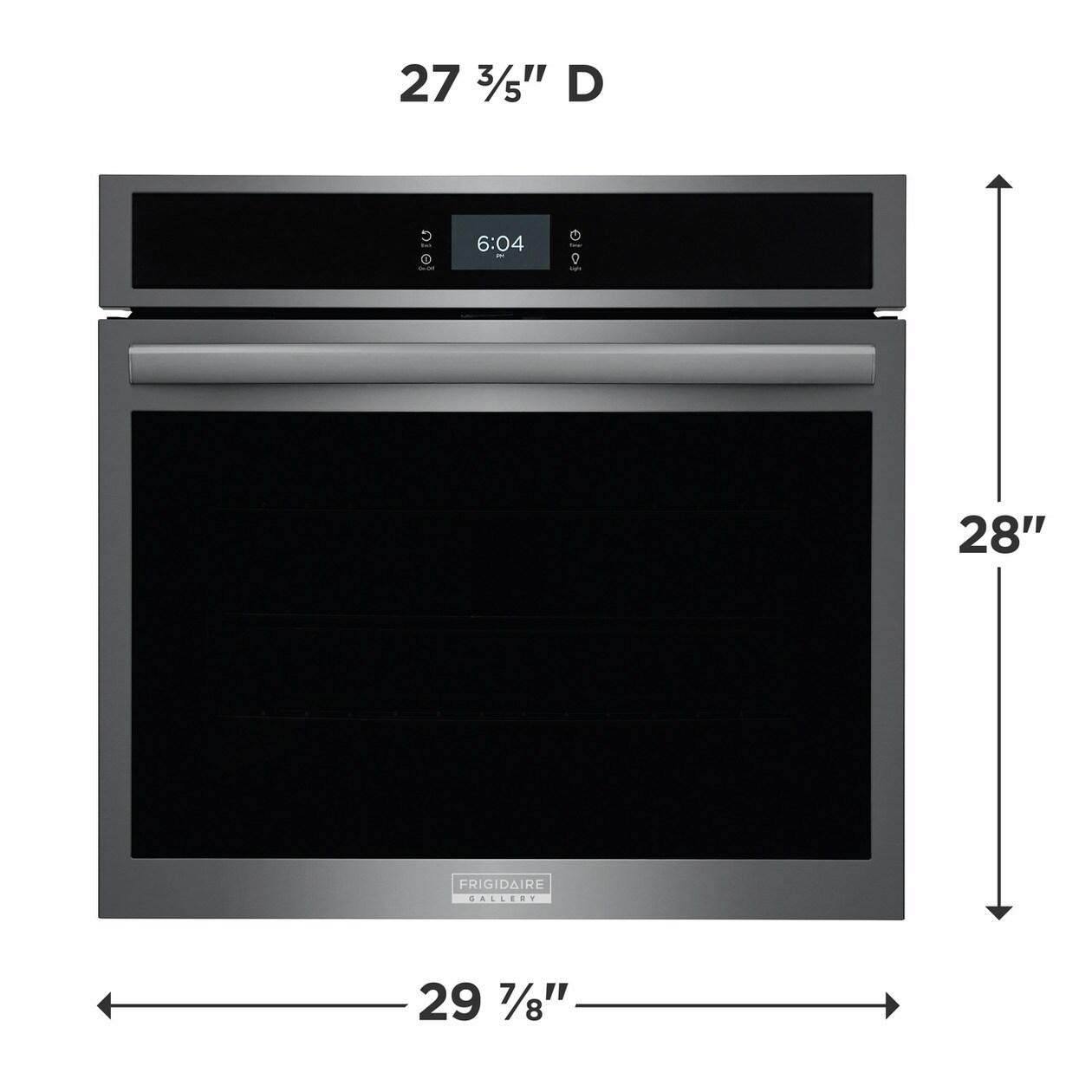 The Frigidaire Gallery 30" Single Wall Oven with Total Convection, features our most powerful and advanced convection system, which enables cooking modes like No Preheat, Air Fry, Slow Cook, Steam Bake, Steam Roast, Air Sous Vide, Convection Roast, Convection Bake, Bread Proof and more! Also includes a convenient temperature probe, a premium touch screen digital control panel and our fingerprint resistant, Smudge-Proof(R) Stainless Steel finish.