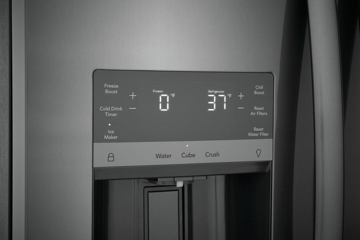 The brand Frigidaire GRSC2352AD delivers stylish function in a 22.3 cu ft counter-depth side-by-side refrigerator featuring 14.3 cu ft fridge and 8 cu ft freezer capacity. The unit offers an external dispenser for water, cubed, and crushed ice, CrispSeal® Plus humidity crisper drawers, EvenTemp™ multi-vent airflow, and LED lighting :contentReference[oaicite:22]{index=22}. Its smudge-resistant black stainless finish, ENERGY STAR® rating, Sabbath Mode, and ADA‑friendly counter-depth design make it ideal for modern kitchen layouts.