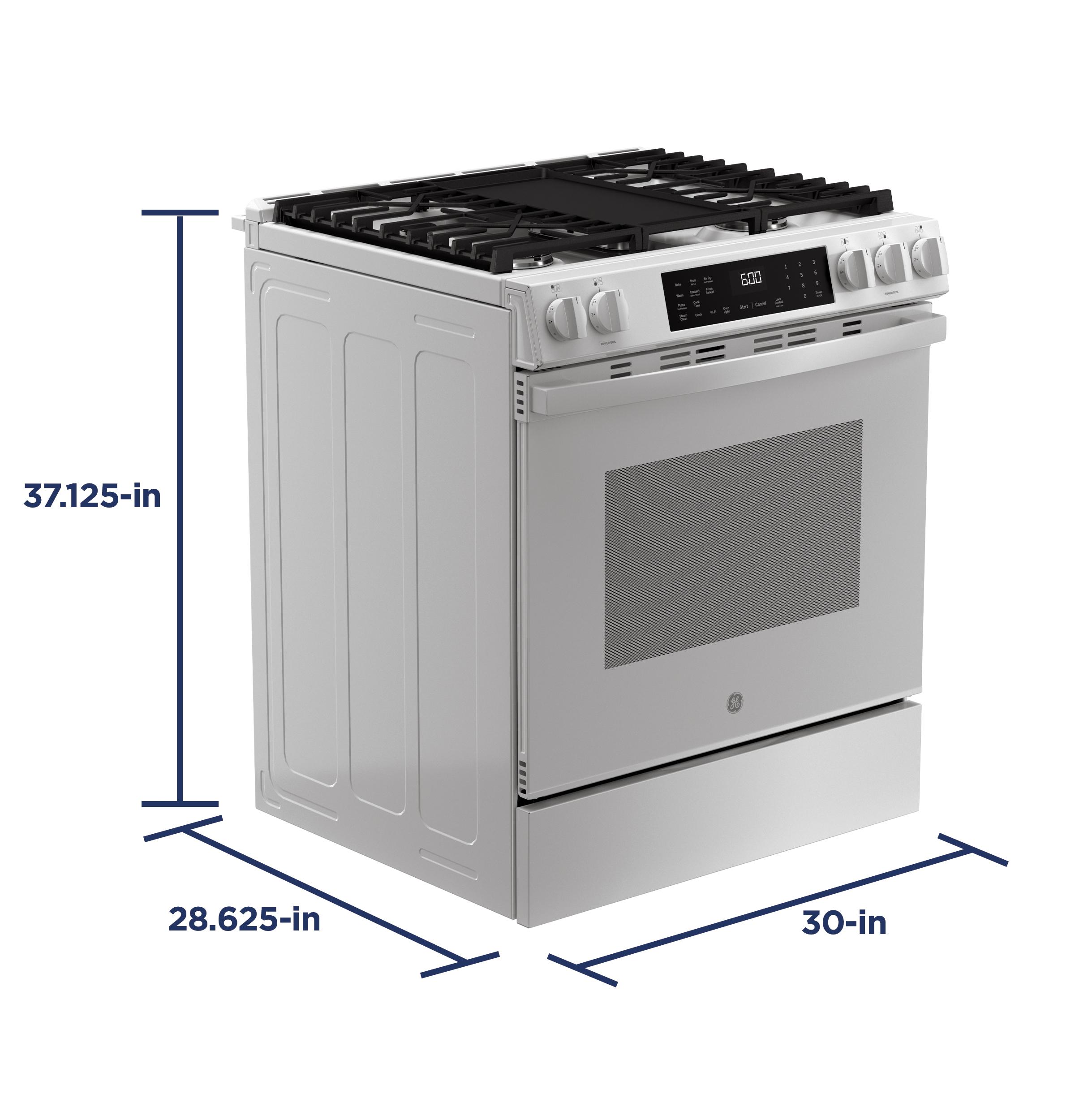 Replace your old 30" free-standing range with a new 30" slide-in model. GE slide-in ranges are guaranteed for an exact fit or GE Appliances will pay up to $300 toward modifications.