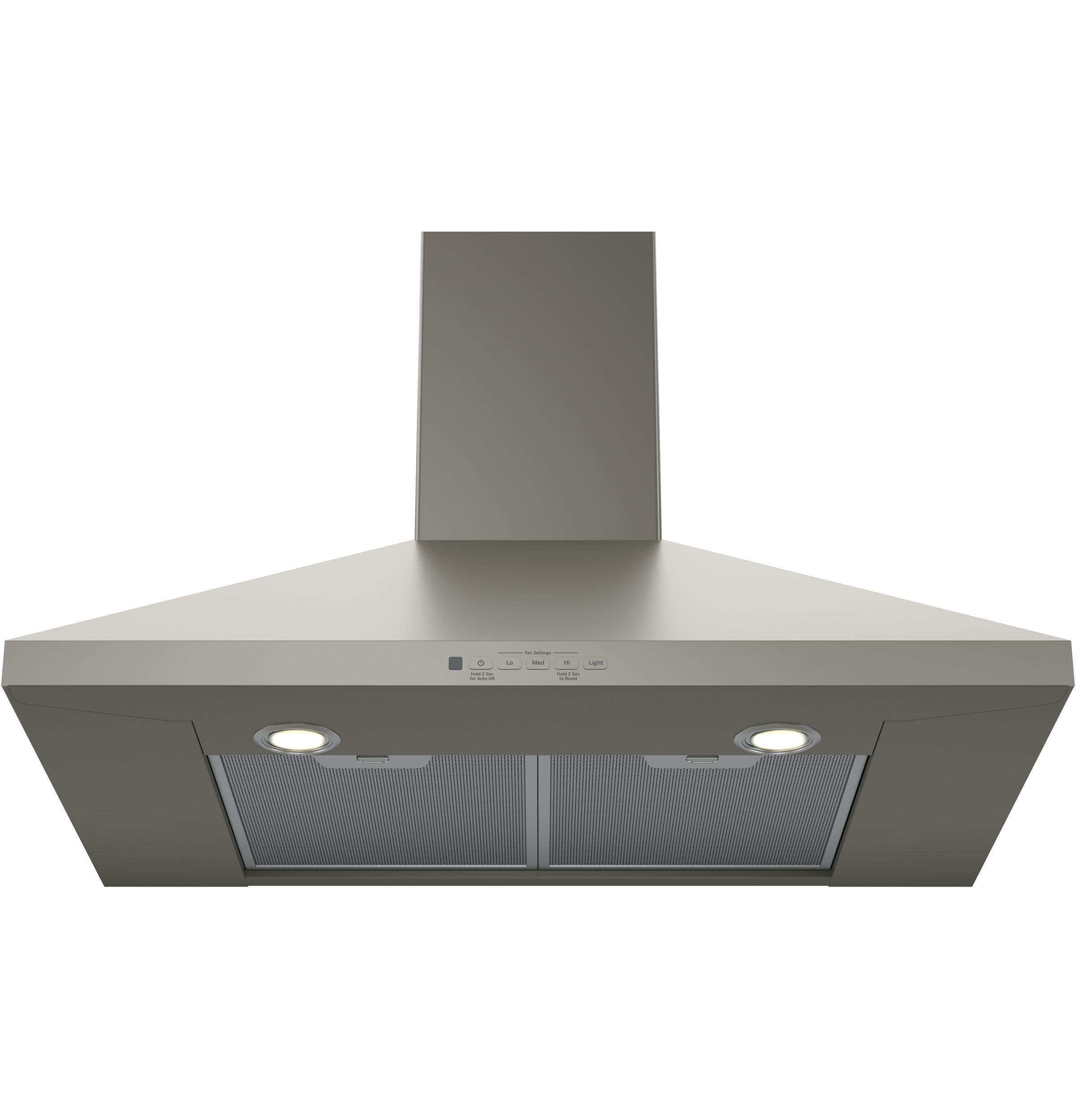 The brand GE JVW5301EJES is a sleek 30-inch wall-mount pyramid chimney hood finished in polished stainless steel. It delivers up to 400 CFM maximum airflow with a 3-speed fan for effective odor and moisture removal. With built-in LED cooktop lighting, it ensures optimal cooking visibility. The easy-to-remove stainless steel filters are dishwasher-safe for convenient cleaning. This hood combines contemporary design, efficient performance, and intuitive controls for modern kitchen spaces.