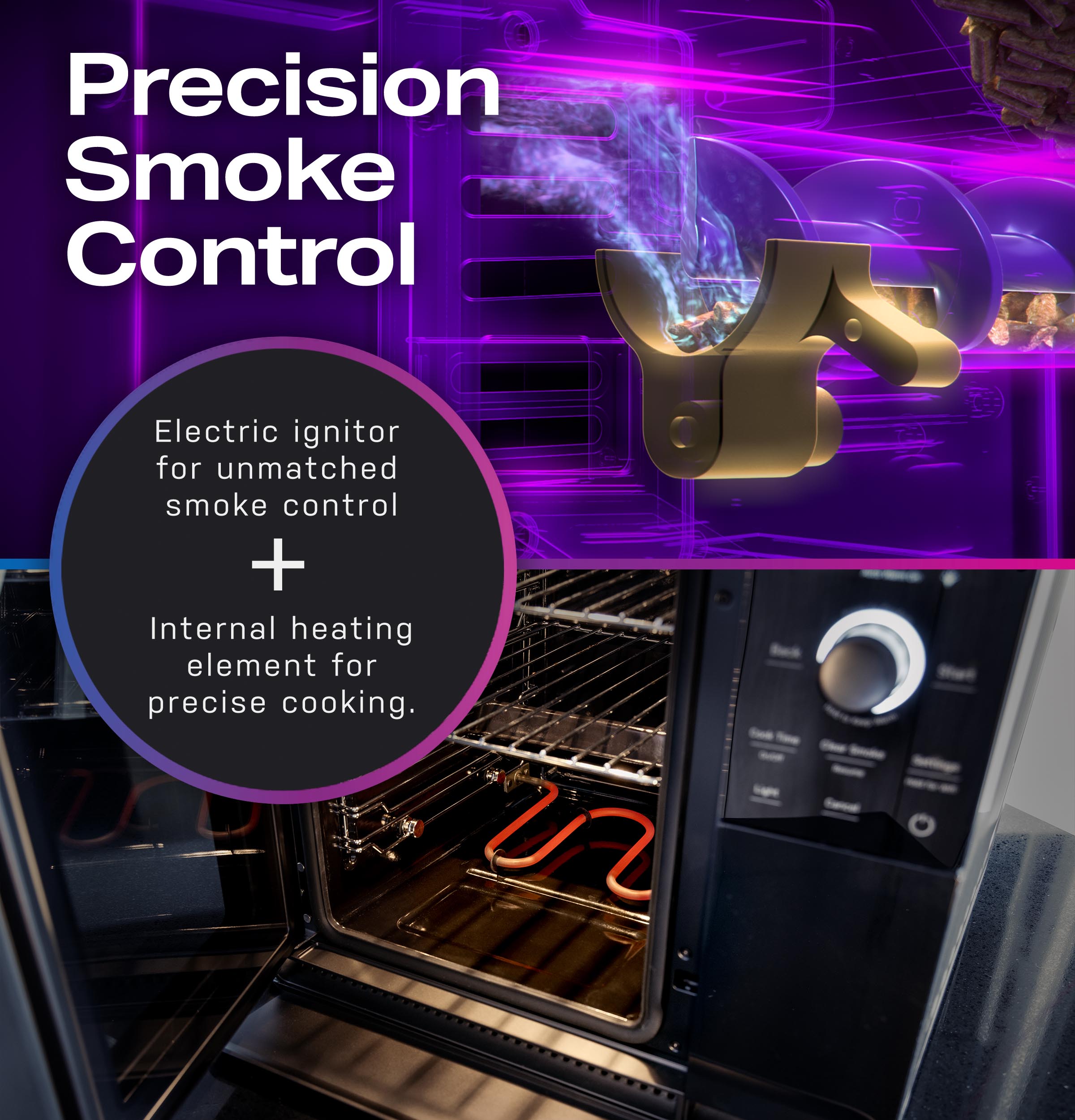 This innovative indoor electric smoker combines an independent heat source for burning pellets with a separate heat source for cooking foods to provide unmatched smoke control and temperature precision for all your BBQ favorites.