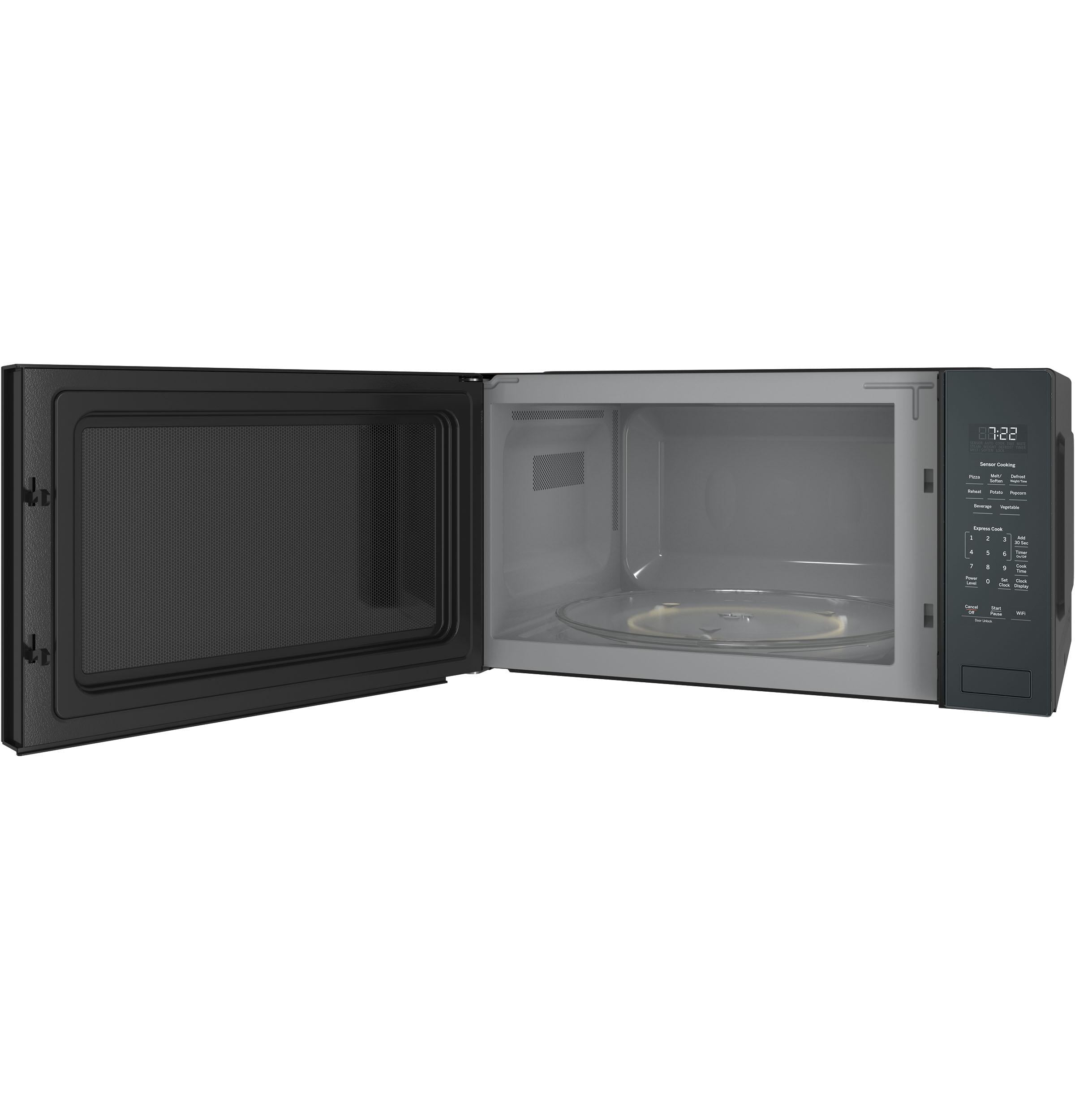This countertop microwave oven is built-in capable with a sleek matching trim kit - Glass touch controls