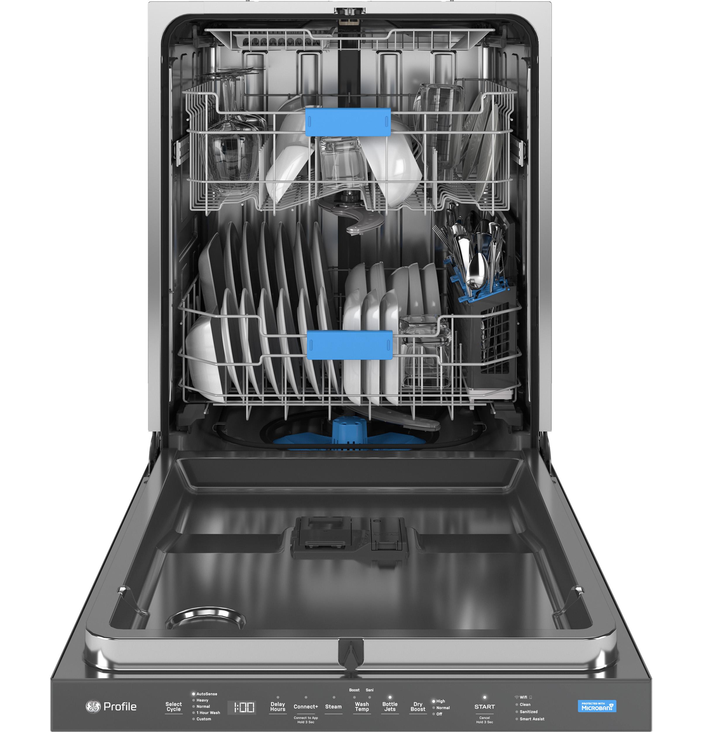 The brand GE PDP715SYVFS combines powerful, smart dishwashing technology in a sleek, fingerprint-resistant stainless steel design. With a spacious 16-place setting capacity and a Stainless Steel Tub, it delivers reliable and lasting performance. The unit runs at just 44 dBA for whisper-quiet cleaning. It features a versatile third rack with removable silverware caddy, bottle wash jets, and Deep Clean silverware jets for thorough cleaning of hard-to-reach items. The innovative Dry Boost™ system dries plastics up to three times better than standard heated dry. It includes a high-temperature Steam + Sani cycle to reduce bacteria, and the Piranha® hard food disposer with filtration handles tough debris. Built-in Wi-Fi with SmartHQ™ enables remote control, monitoring, and alerts. Additional protection includes Active Flood Protect, Smart Assist, and everyday convenience from Microban® antimicrobial-treated touchpoints and a fingerprint-resistant control panel.