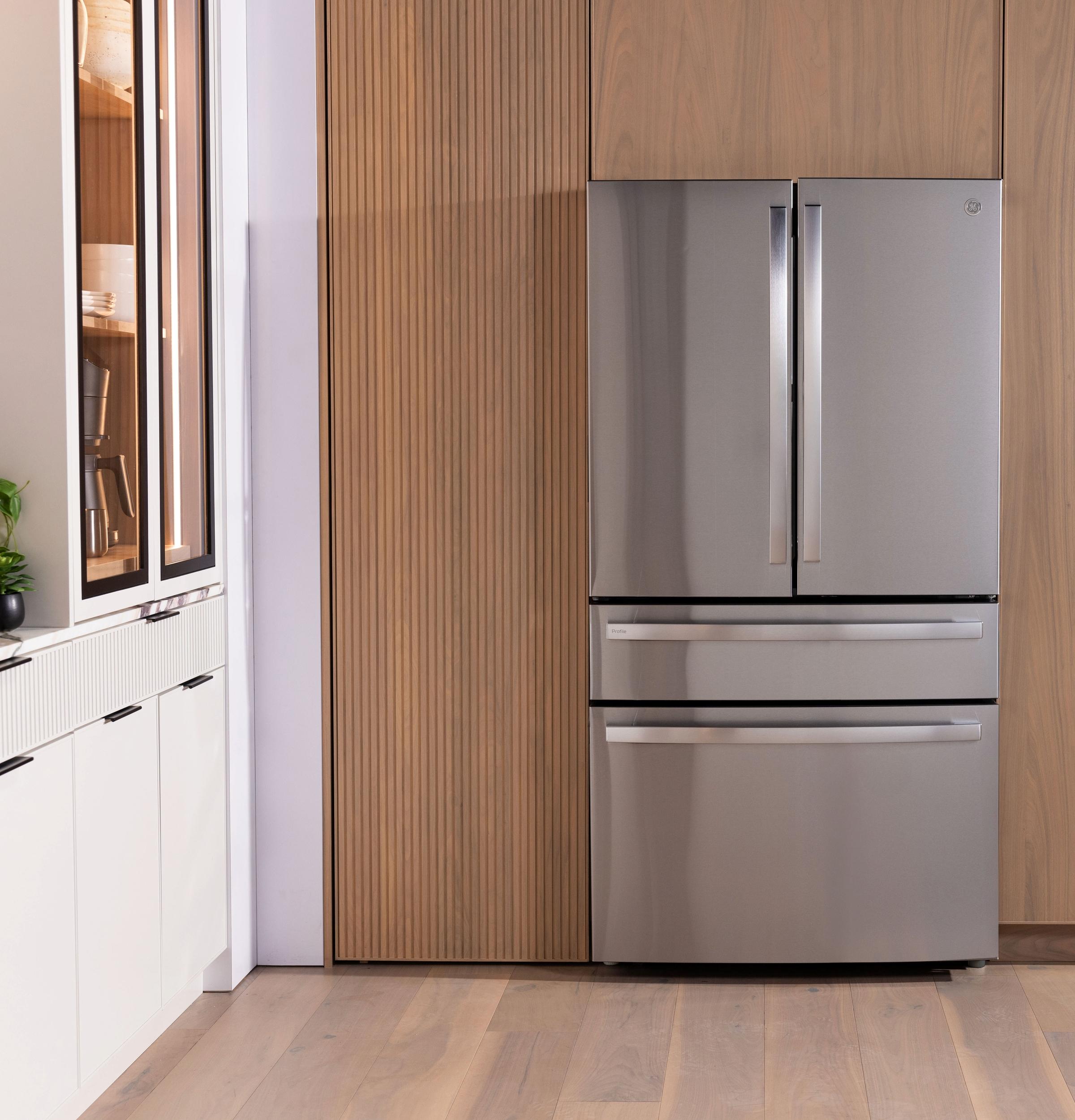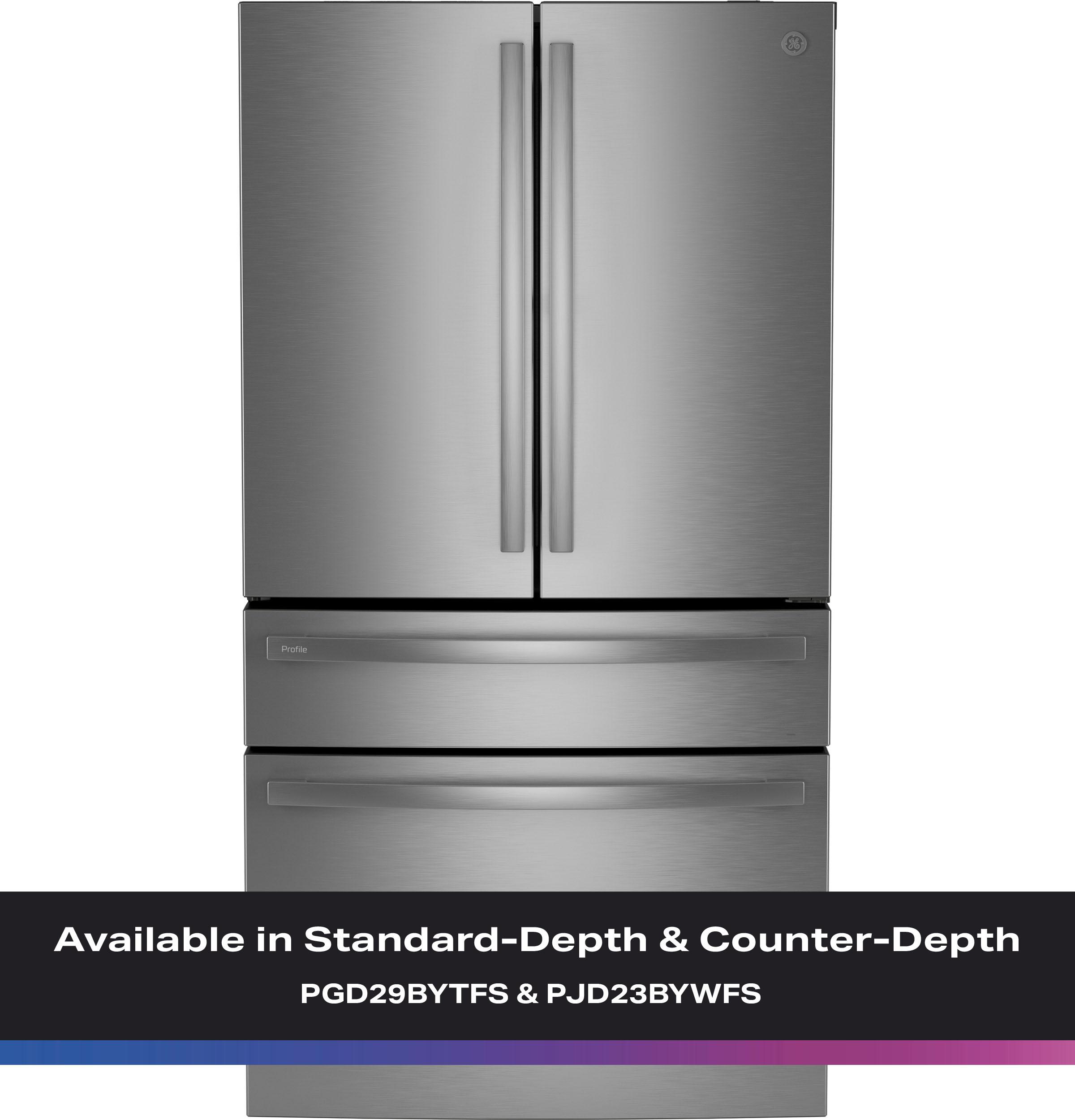 The brand GE Profile™ ENERGY STAR® 29 Cu. Ft. Smart Fingerprint Resistant 4‑Door French‑Door Refrigerator with Door‑In‑Door revolutionizes kitchen convenience with ample storage, smart technology, and high-end design. Boasting a spacious 29 cu ft interior and a Door‑In‑Door™ compartment for quick-access refreshments without opening the main door, it helps preserve cold air. The sleek fingerprint‑resistant stainless steel finish ensures effortless maintenance, while the intuitive 2‑door, 4‑door configuration offers organized storage with adjustable gallon door bins and humidity-controlled crisper drawers. Built-in ENERGY STAR® certification guarantees efficient performance, and smart features such as Wi-Fi connectivity allow remote control of temperature, ice and water dispenser, and diagnostic alerts using the GE Appliances app. Elegant LED lighting, a built-in water filtration system, and convertible temperature zones complete the package, making this French-door refrigerator ideal for modern households seeking style, convenience, and energy efficiency.