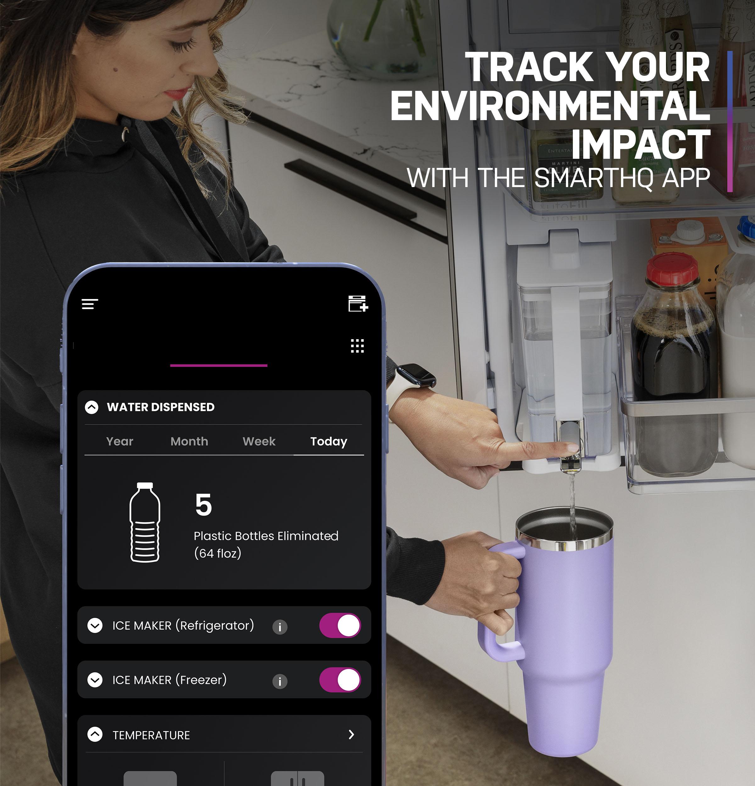 This smart refrigerator features an advanced water filtration system that produces safe drinking water and ice. It removes 98% of certain pharmaceuticals from tap water, including ibuprofen, atenolol, fluoxetine, progesterone and trimethoprim.