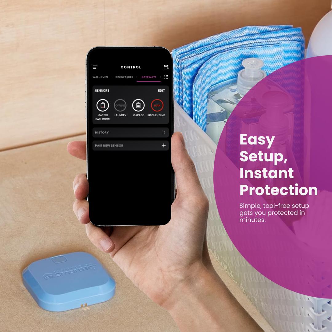 Reduce risk of water damage with 24/7 push notifications via the SmartHQ app