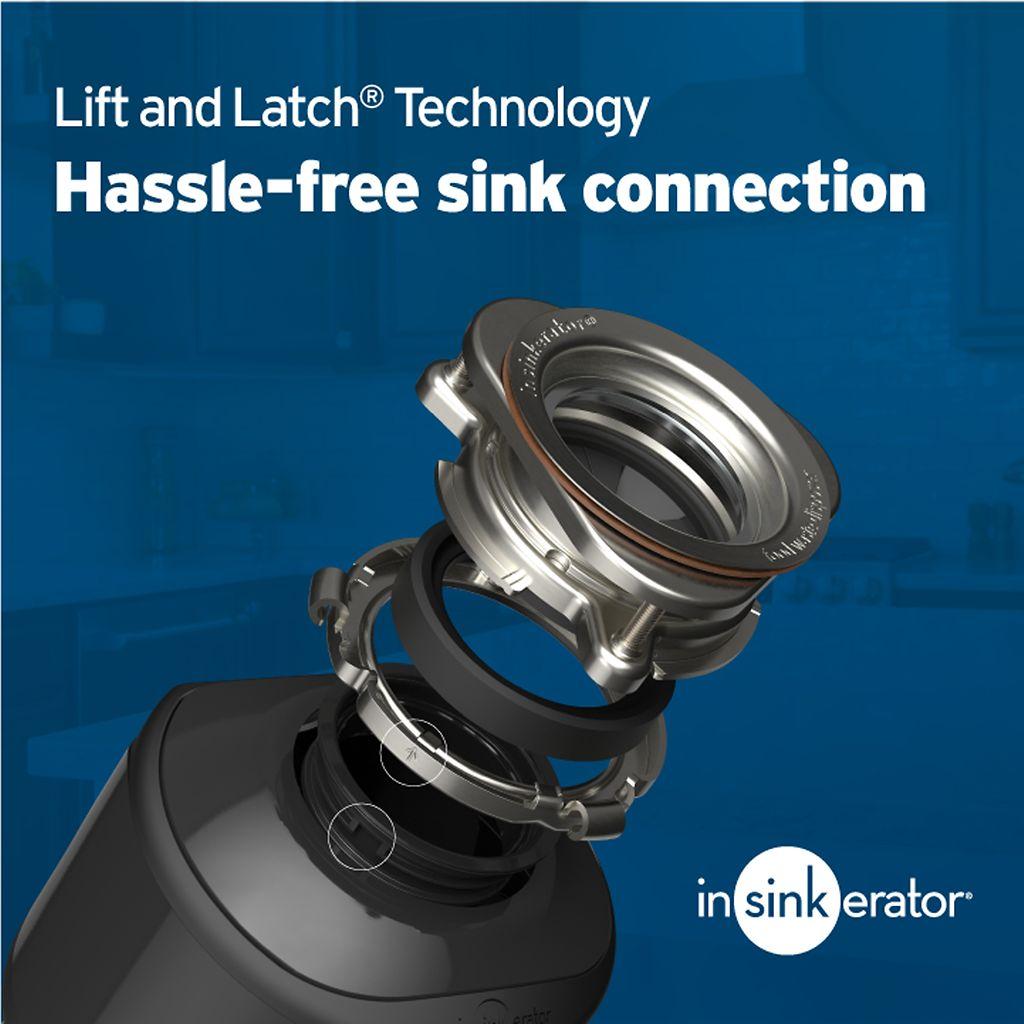 The InSinkErator Badger 500, 1/2 HP Garbage Disposal, offers a clean, hygienic, convenient and environmentally responsible way to rid your kitchen of food scraps at the touch of a button. Septic-safe for properly maintained septic systems and fitting easily and discreetly under the kitchen sink, this compact garbage disposal effortlessly grinds food waste into tiny particles that easily flush down the kitchen drain. Part of the InSinkErator Badger Series, the durable, functional, long-lasting, and budget-friendly choice for garbage disposals, the Badger 500 disposal with factory-installed power cord features a 1/2 HP, heavy-duty Dura-Drive induction motor with more jam-busting torque to power through everyday food scraps. The rugged, galvanized steel grind components with stainless steel swivel lugs offer long-lasting durability, and the compact design saves valuable under-sink space. This InSinkErator Badger garbage disposal is equipped with Lift and Latch technology for hassle-free sink connection, so you don't have to hold the disposal with one hand while adjusting the mounting ring with the other. Your kitchen is the heart of your home, where you gather with family and other loved ones. The perfect complement to every kitchen since 1938, InSinkErator has been making products that aren't just better for your family, they're better for your world. Simple solutions from InSinkErator help you Kitchen Better.