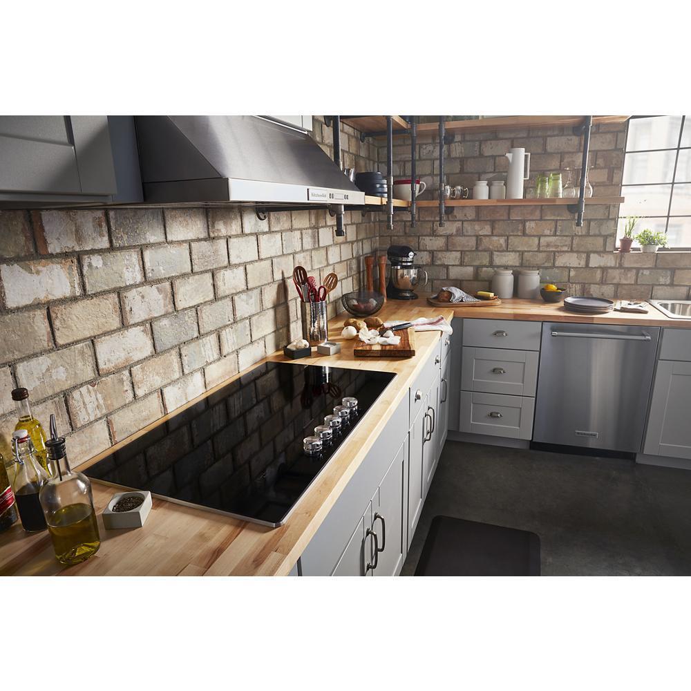 The brand + SKU: The KitchenAid KCES556HSS combines professional-grade design with user-focused functionality. This 36" electric cooktop features five radiant glass-ceramic elements, including a versatile 10"/6" dual element and two flexible 9"/6" expansion elements that adjust to varied cookware sizes. The stainless steel trim adds a premium finish that resists smudges and complements any kitchen decor. Precise metal knob controls offer tactile feedback and effortless temperature adjustment. A smooth glass surface ensures easy cleanup while hot surface indicators enhance safety. Durable radiant heat technology enables consistent cooking results. The KCES556HSS blends style, performance, and convenience for an elevated cooking experience.