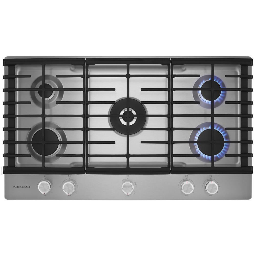 If you love to experiment and push culinary limits, you'll appreciate the power and versatility of this 36-inch cooktop. Five individual burners includes a powerful 20,000 BTU Dual Ring Burner that is among the most powerful in the industry. The eye-catching design includes Multi-Finish Knobs and the scratch-resistant CookShield Finish help protect the surface against stains that may occur with high-temperature cooking.