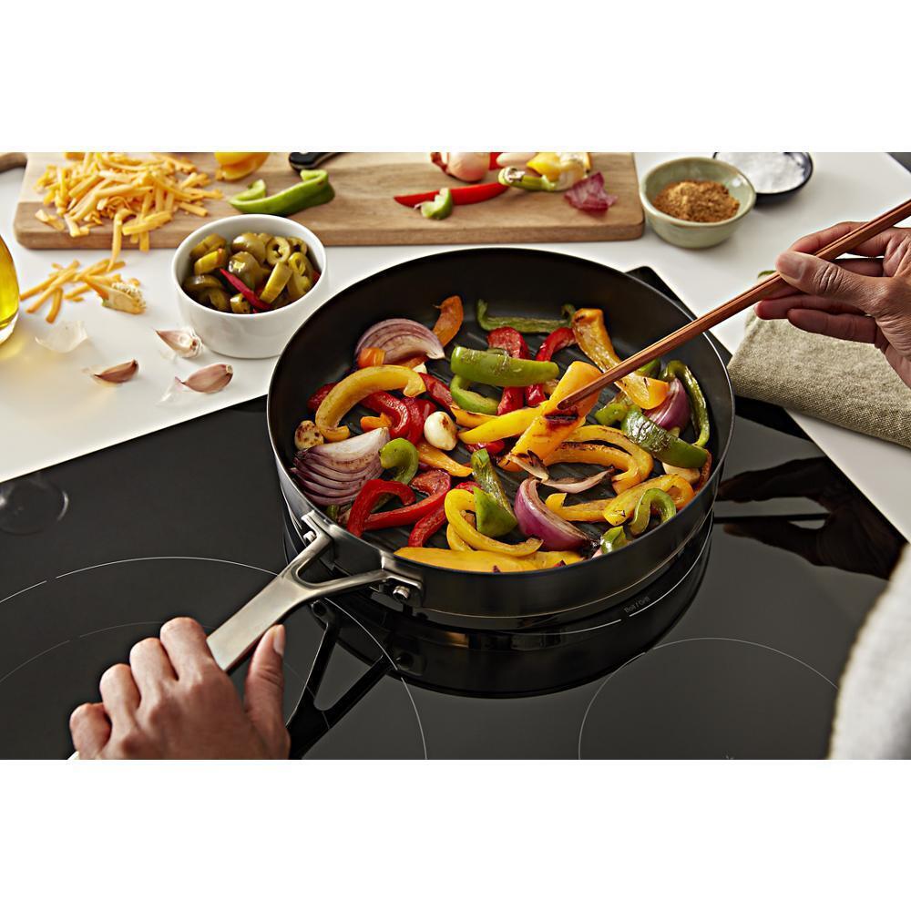 The KitchenAid KCIG556JBL is a premium 36-inch induction cooktop designed for powerful, efficient, and responsive cooking. With five induction elements, including a 12-inch/5,400-watt power boost burner, this cooktop adapts to various cookware sizes while delivering rapid, even heat. The advanced pan size detection system automatically senses and adjusts the heat to fit the pan’s size, ensuring optimal energy use. Its intuitive touch-activated glass controls provide seamless operation and a sleek, easy-to-clean surface. The bridge element allows for combined heating zones, ideal for griddles or larger cookware. With a minimalist black finish and frameless edge design, the KCIG556JBL brings modern elegance and efficiency to any kitchen. Features like hot surface indicators and control lock function enhance safety, while the simultaneous multi-element operation makes complex cooking tasks more manageable and precise.