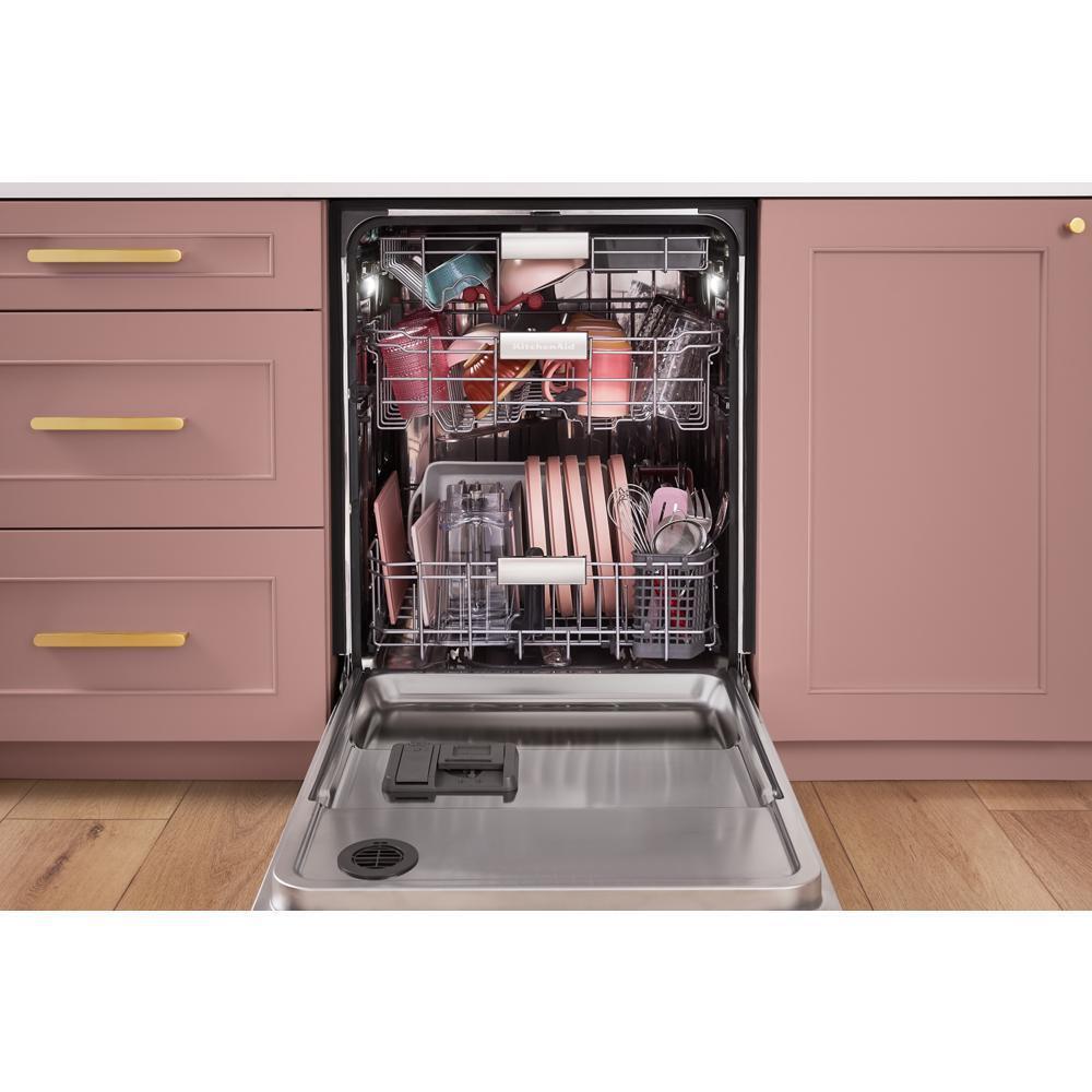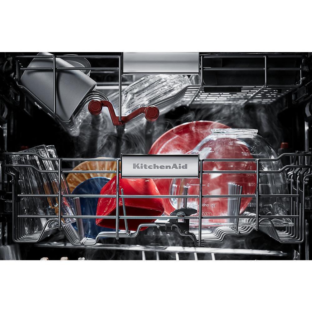 The brand KitchenAid KDTM804KPS combines state‑of‑the‑art performance and convenient design in a tall‑tub built‑in dishwasher. Featuring over 50 targeted wash jets across five wash arms and the uniquely movable 360° Max Jets™ Third Rack, it delivers complete wash coverage even for cups, mugs, and utensils. The stainless steel tub and True Self‑Cleaning Filtration system prevent food buildup and eliminate manual filter cleaning. Enjoy flexible drying options with the Fan‑Enabled ProDry™ System, illuminated loading with LED interior lighting, and smooth handling via SatinGlide® Max rails. With five adaptive cycles including ProWash™, sensor cleaning, sterile Sani‑Rinse® option, and a fingerprint‑resistant PrintShield™ Finish, this dishwasher supports busy households with reliable, spotless results.