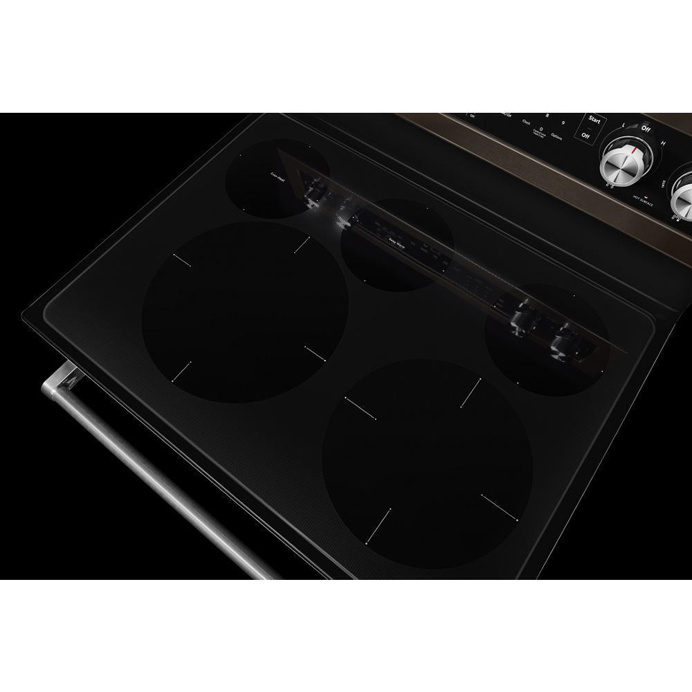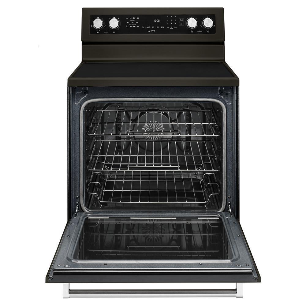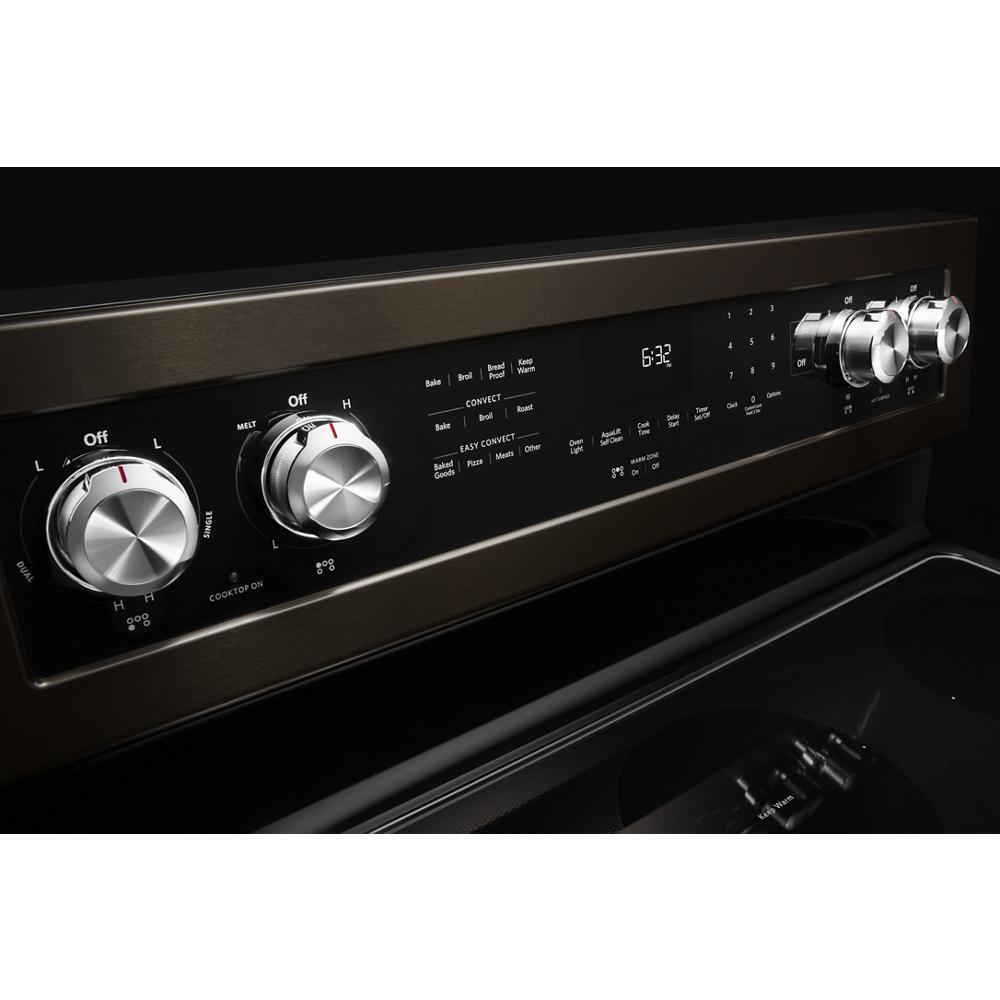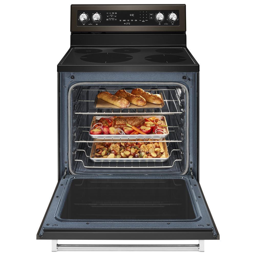 This versatile electric freestanding range produces flawless cooking results with Even-Heat(TM) True Convection. The unique bow-tie design and convection fan ensure the inside of the entire oven is heated to, and stays at, the perfect temperature. The cooktop features five heating surfaces, including a dedicated warming zone, allowing you to do more on your range.