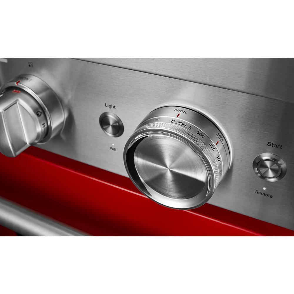 The brand KitchenAid KFGC500JPA delivers a high‑performance, smart commercial‑style gas range engineered for culinary enthusiasts. Featuring a sturdy 30‑inch freestanding design and four heavy‑duty sealed burners offering high, medium, and low heat settings, this range supports everything from rapid boiling to precise simmering. The spacious 5.8 cu. ft. convection oven delivers consistent results via fan‑assisted True Convection, and the built‑in Temperature Probe ensures perfect doneness. With integrated smart enabled controls for remote monitoring and notifications, a stylish stainless steel finish, and durable cast‑iron grates, the KFGC500JPA combines professional kitchen capability with smart convenience—ideal for everyday cooking and gourmet exploration.