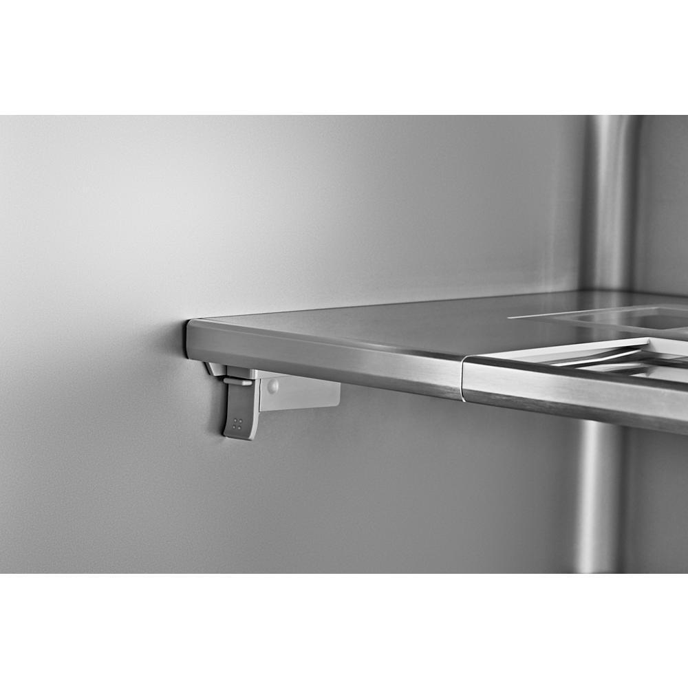 The KitchenAid KRQC736RPS French door refrigerator delivers refined style and advanced food preservation in a counter-depth design that aligns beautifully with surrounding cabinetry. With a 22.1 cu. ft. capacity, it offers spacious storage in a well-organized interior featuring the elegant Platinum Interior Design with glossy metallic accents. The innovative Preserva® Food Care System uses dual evaporators and a fresh air filter to optimize humidity and temperature, keeping food fresh longer. Adjustable satin-glide crispers and specialized storage zones provide flexibility for fresh produce, deli items, and beverages. LED lighting brightly illuminates the interior, while spill-proof glass shelves make cleanup easy. With a stainless steel exterior, counter-depth profile, and sleek handles, this refrigerator offers a built-in look and high-end presence, ideal for modern kitchens that prioritize form and function.