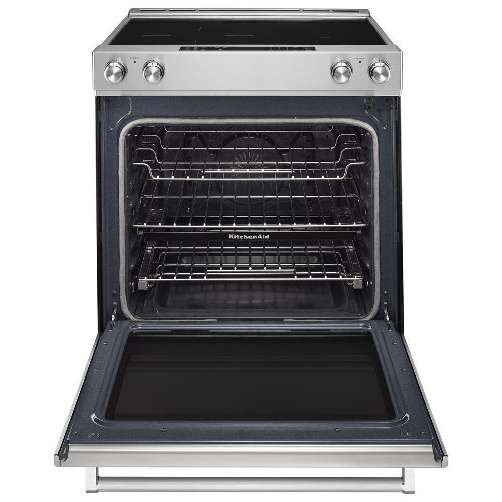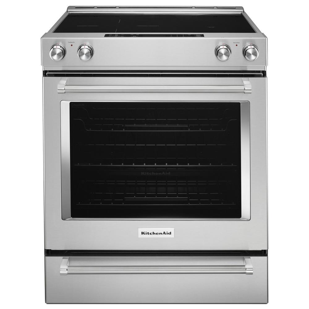 The brand KitchenAid KSEB900ESS combines versatility and precision cooking in a 30‑inch slide‑in electric range featuring a 7.1 cu ft oven with Even‑Heat™ True Convection and a handy Baking Drawer. Five smooth‑top cooking elements include a triple‑zone (6”, 9”, 12”) and dedicated warm zone, plus a Steam Rack. Glass touch controls and ADA‑compliant design ensure ease of use, while the AquaLift® self‑cleaning system simplifies oven maintenance. Complete with Sabbath Mode and a FIT Guarantee for seamless countertop integration, this range offers powerful performance for modern cooking needs.