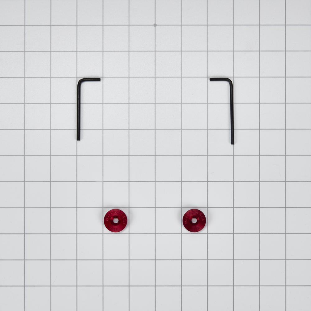 This Wall Range Door Handle Medallion Set, Red provides an alternate color option for the end caps of your KitchenAid(R) appliance handles. The kit includes (2) red medallions, (1) 1/8" hex allen wrench, and (1) 3mm hex allen wrench. The medallions can easily be replaced by removing the center screw and replacing it with the alternate medallion. Order one medallion kit per handle. Installation of these handle medallions will require no tools, disassembly or repair experience. Make sure you unplug the appliance or shut off the house circuit breaker for the appliance before installing this part