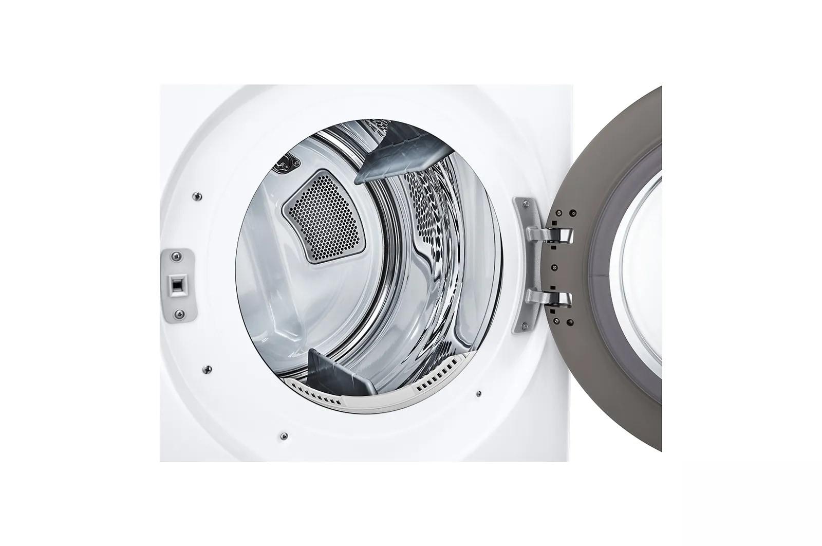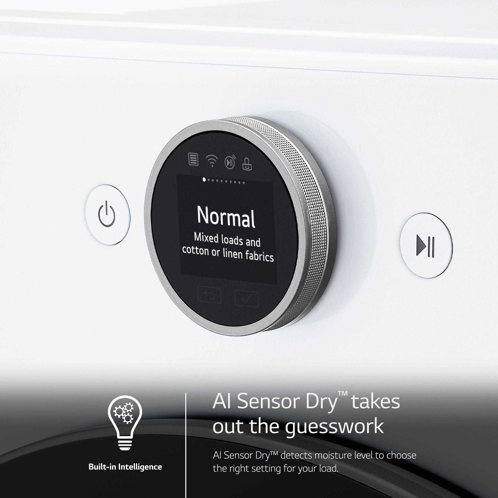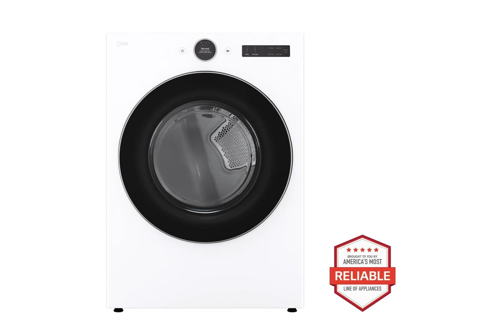 The LG DLEX5500W 7.4 cu. ft. Front Load Electric Dryer delivers powerful drying performance with intelligent features designed for efficiency and fabric care. With its large 7.4 cu. ft. capacity, this dryer easily handles bulky loads and bedding. AI Sensor Dry automatically detects moisture levels and fabric types to optimize drying times, reducing wear and energy waste. The TurboSteam™ function refreshes garments and reduces wrinkles in minutes, eliminating the need for ironing. Smart features like ThinQ® connectivity allow remote operation and monitoring from your smartphone, while FlowSense™ technology notifies you of duct blockages to improve safety and performance. The durable stainless steel drum, along with wrinkle care options and a crisp White finish, makes the DLEX5500W an ideal choice for high-efficiency, stylish laundry care.
