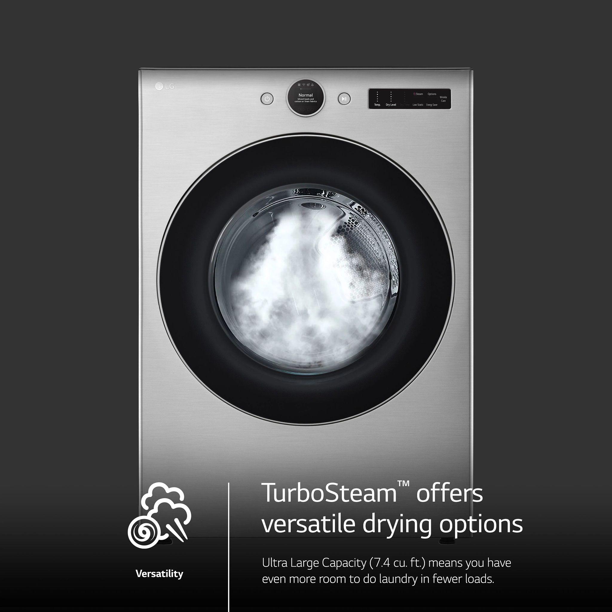 The brand LG DLGX5501V is a 7.4 cu. ft. Ultra Large Capacity Smart Front Load Gas Dryer designed to deliver superior drying performance and convenience. Equipped with AI Sensor Dry technology, it uses built-in sensors to detect fabric texture, load size, and moisture levels, automatically adjusting drying time for optimal results. The TurboSteam™ feature refreshes clothes and reduces wrinkles in just 10 minutes, making it ideal for busy households. The dryer also includes a FlowSense® Duct Clogging Indicator to monitor airflow and maintain efficiency. With smart connectivity via the ThinQ® app, users can control and monitor the dryer remotely, receive maintenance alerts, and access additional features. The sleek Graphite Steel finish and modern design ensure it complements any laundry room aesthetic.