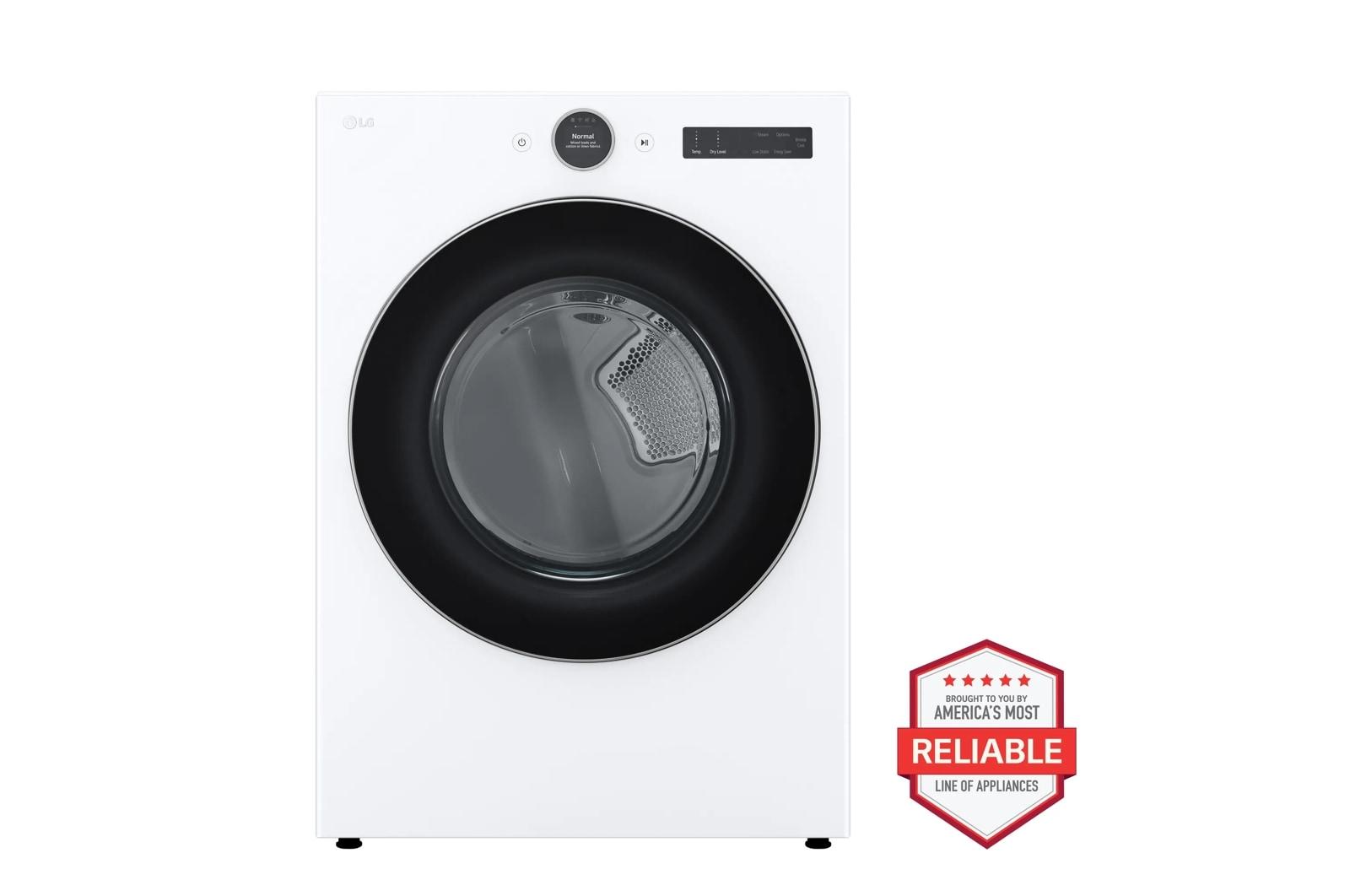 The brand LG DLGX5501W is a 7.4 cu. ft. Ultra Large Capacity Smart Front Load Gas Dryer designed to deliver advanced drying performance and convenience. Equipped with AI Sensor Dry technology, it uses built-in sensors to detect fabric texture, load size, and moisture levels, automatically adjusting drying time for optimal results. The TurboSteam™ feature refreshes clothes and reduces wrinkles in just 10 minutes, making it ideal for busy households. The dryer also includes a FlowSense® Duct Clogging Indicator to monitor airflow and maintain efficiency. With smart connectivity via the ThinQ® app, users can control and monitor the dryer remotely, receive maintenance alerts, and access additional features. The sleek white finish and modern design ensure it complements any laundry room aesthetic.