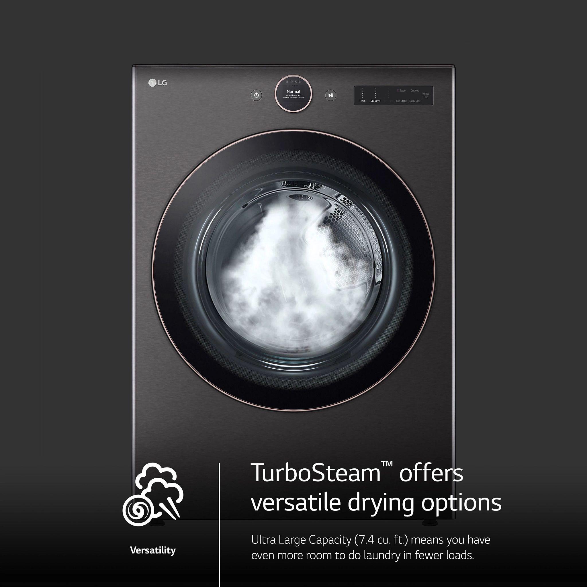 The brand LG DLGX6501B is a high-performance 7.4 cu. ft. front load gas dryer designed for modern laundry rooms. Equipped with AI Sensor Dry, the dryer intelligently adjusts run time and heat levels based on moisture and fabric type to prevent over-drying. The innovative TurboSteam™ feature efficiently reduces wrinkles and freshens fabrics in just minutes. Built with a durable NeveRust® stainless steel drum and featuring a user-friendly digital LCD control dial and touch panel, this model provides 23 drying cycles and 11 customizable options. Its smart features include Wi‑Fi ThinQ® integration for remote monitoring, notifications, and voice control compatibility. Additional conveniences include FlowSense® duct blockage indicators, a reversible tempered glass door, stackable design, and ENERGY STAR® certification—making the LG DLGX6501B a smart, stylish, and efficient laundry companion.