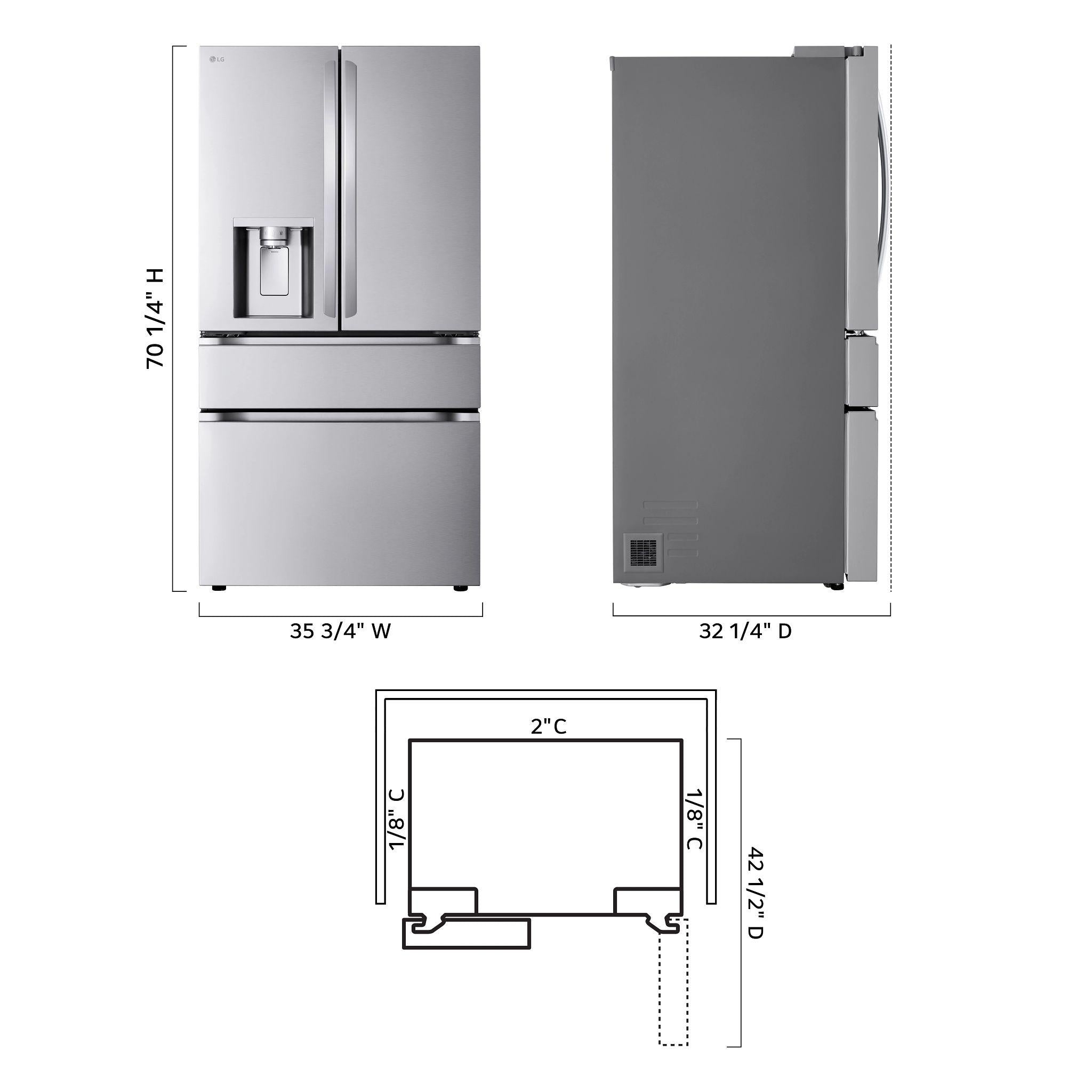 Stock-up and store everything you need. With a generous 25 cubic feet of space that's among the largest of any LG counter-depth model, this LG French Door refrigerator gives you ample space for all of your family's favorite foods and keeps them conveniently organized and within reach.