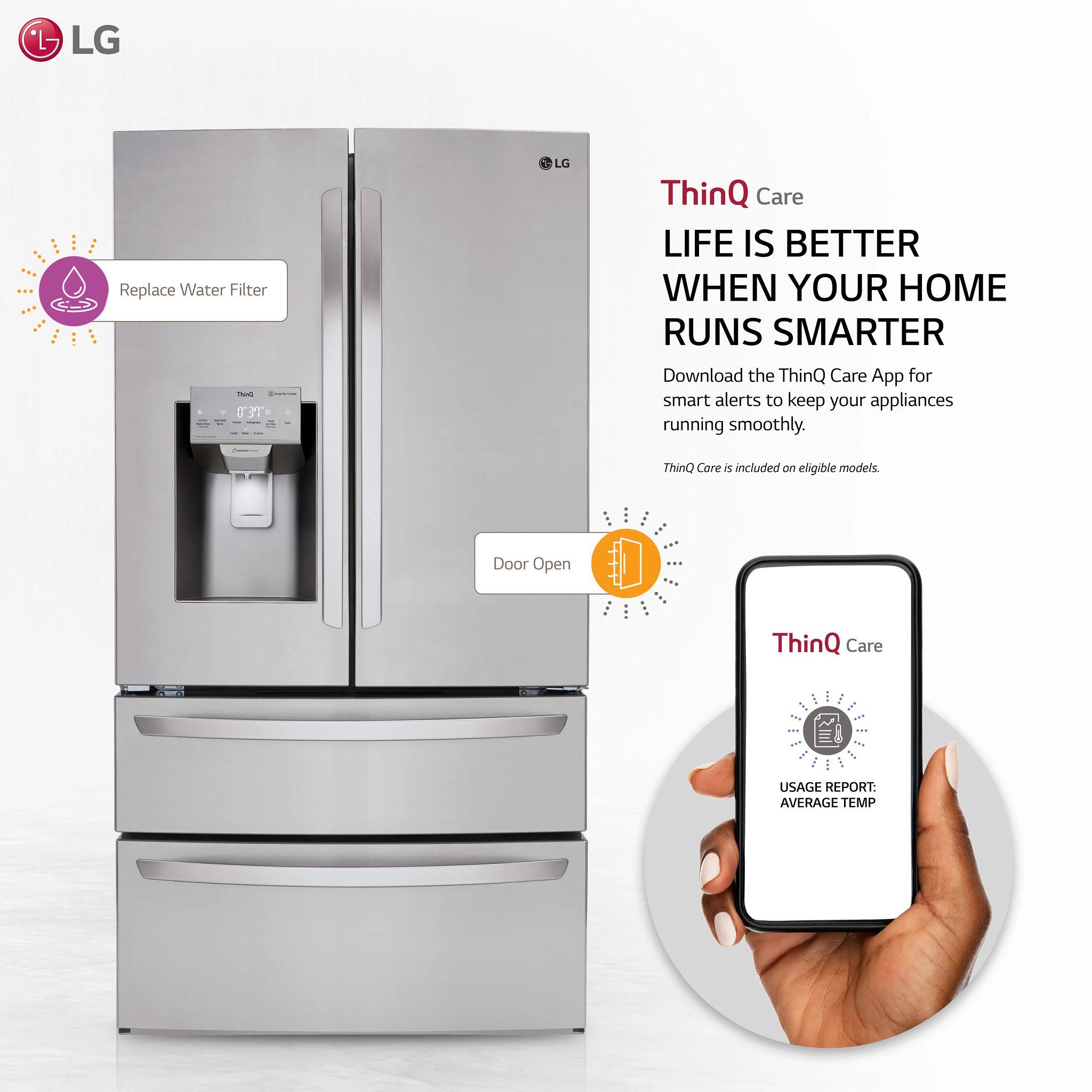 The ThinQ app offers control and convenience for smart LG appliances to help you simplify life and enjoy the comforts of home. Manage and monitor your refrigerator remotely, track energy and filter usage, use with Google or Alexa voice assistants, and more. ThinQ Care appliances send usage, maintenance, and diagnostic alerts to notify you of potential issues like temperature changes. ThinQ UP appliances receive software updates for new features and enhancements. Learn more.