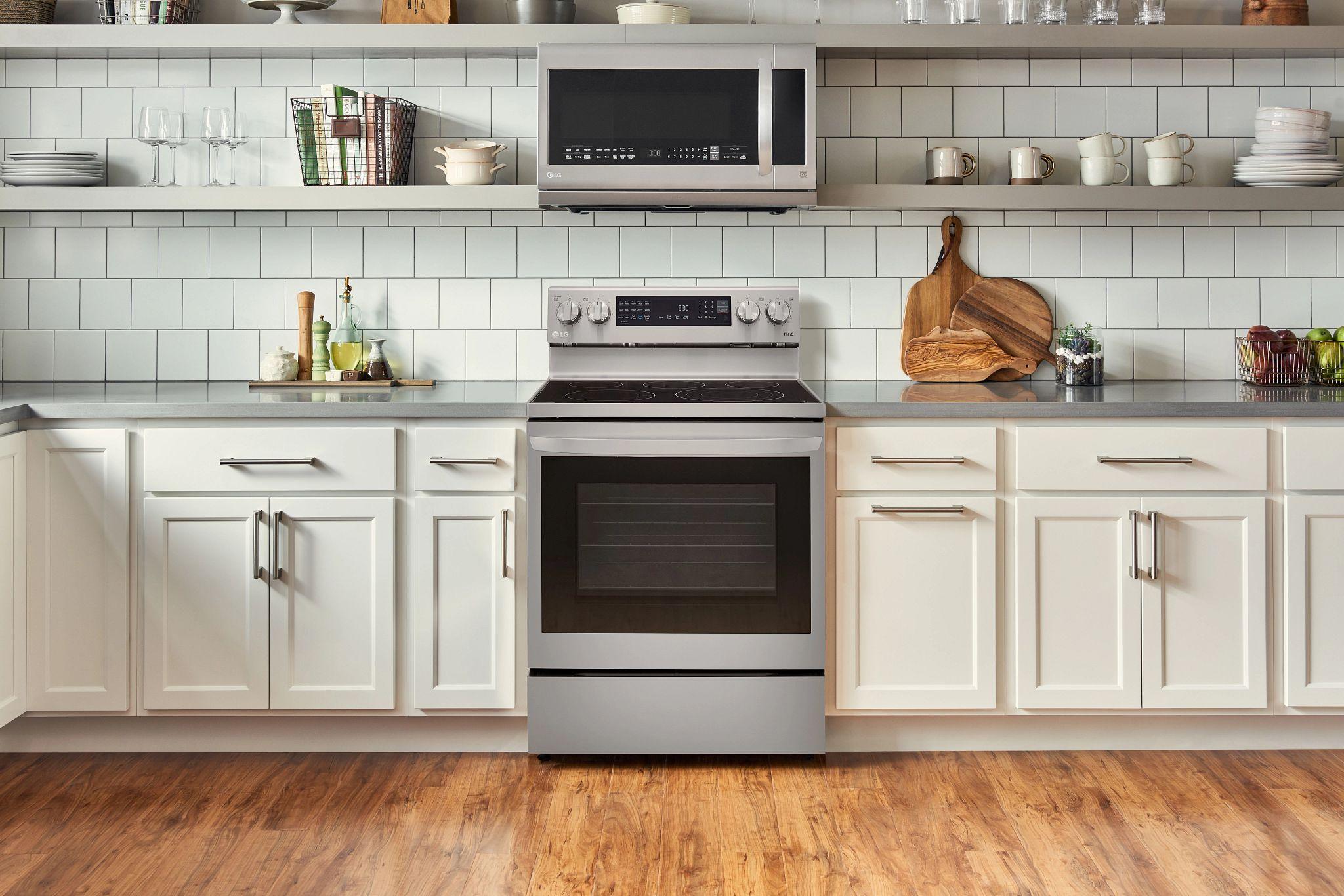 The LG LREL6325F electric range brings powerful cooking performance and smart design to your kitchen. Featuring a spacious 6.3 cu. ft. oven, it’s perfect for preparing large meals or multiple dishes at once. The integrated Air Fry function delivers crispy, delicious food without preheating or added oil. With InstaView®, a simple knock lets you check on meals through the oven window without opening the door and losing heat. EasyClean® uses steam to refresh the oven interior in just 10 minutes—no chemicals or high heat required. The five-element cooktop includes an UltraHeat™ 3200W burner for rapid boiling and dual-size elements for flexible cookware use. Sleek glass touch controls, a storage drawer, and a PrintProof™ Stainless Steel exterior round out this elegant, efficient appliance. Designed for convenience, performance, and durability, it’s ideal for busy households and home chefs alike.