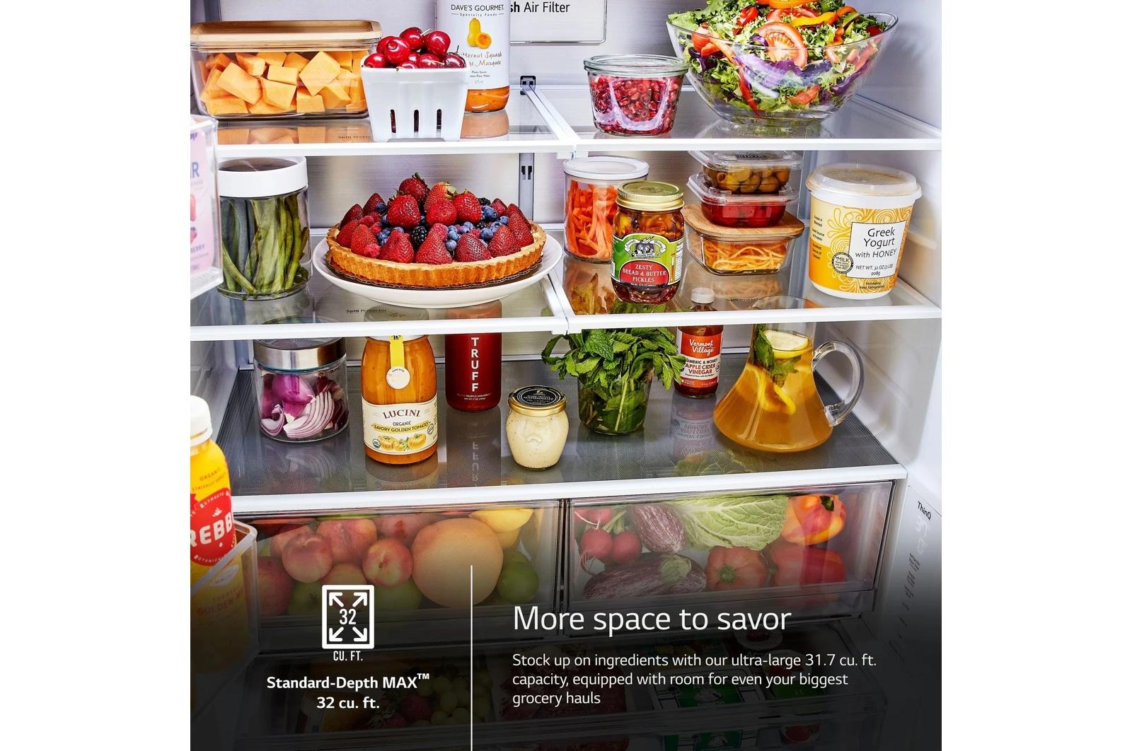 This impressive, 32 cu. ft. French Door refrigerator offers room for some of the biggest shopping expeditions and then some.