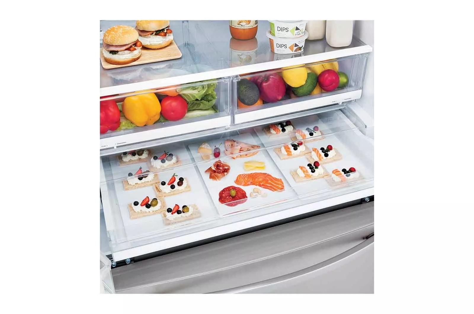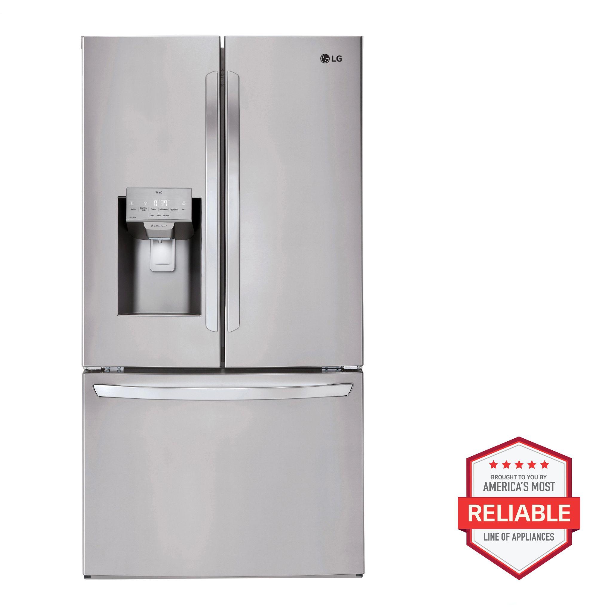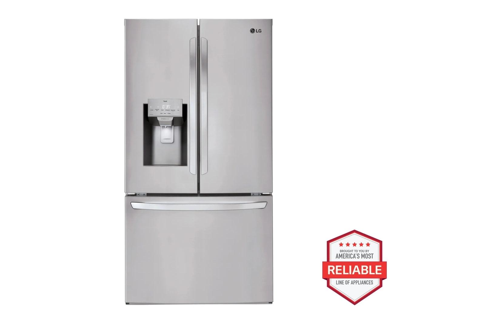 Stock-up and store everything you need. With a cavernous 28 cubic feet of space, this LG French Door refrigerator gives you ample space for all of your family's favorite foods and keeps them conveniently organized and within reach