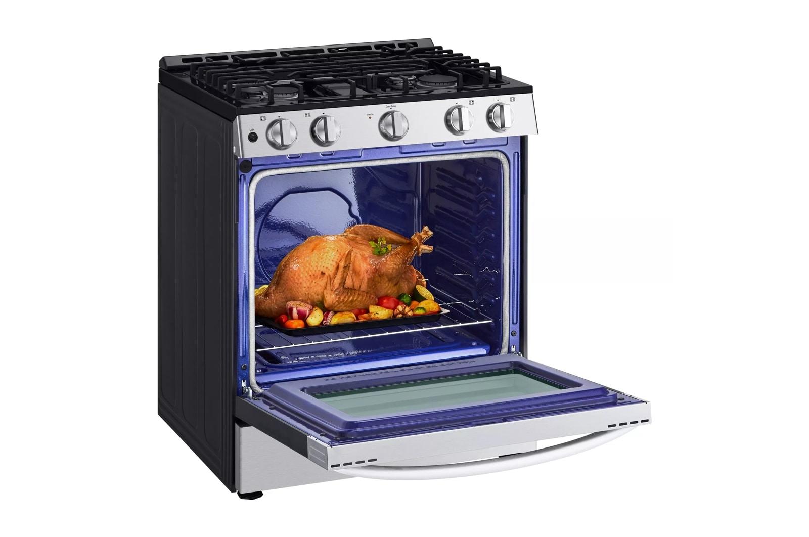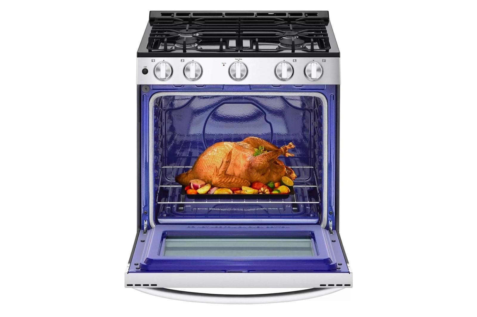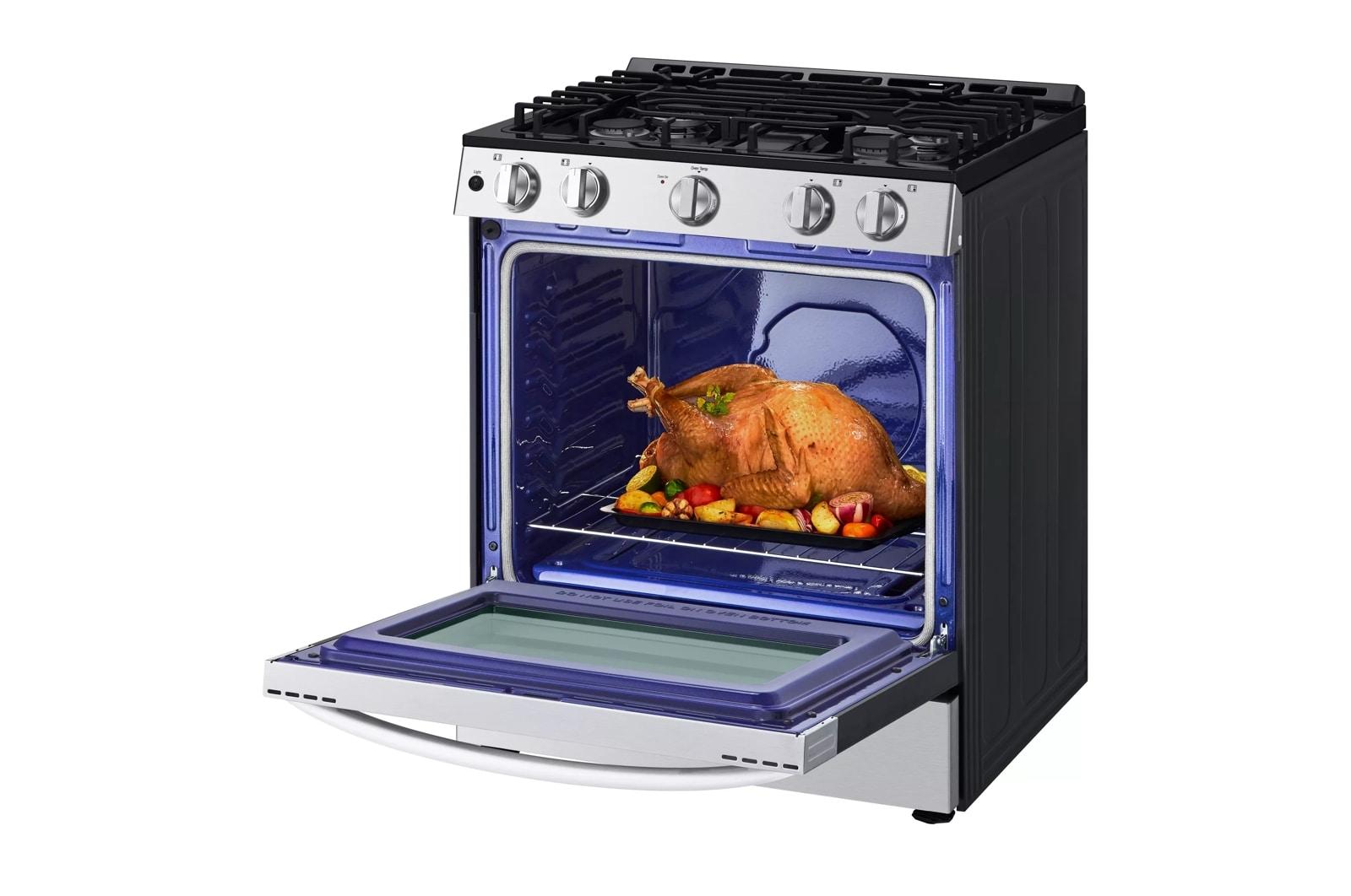 Whether you're baking large batches of cookies or a 20-lb turkey and the sides for the holidays, this spacious 5.8 cu. ft. oven can fit it all.