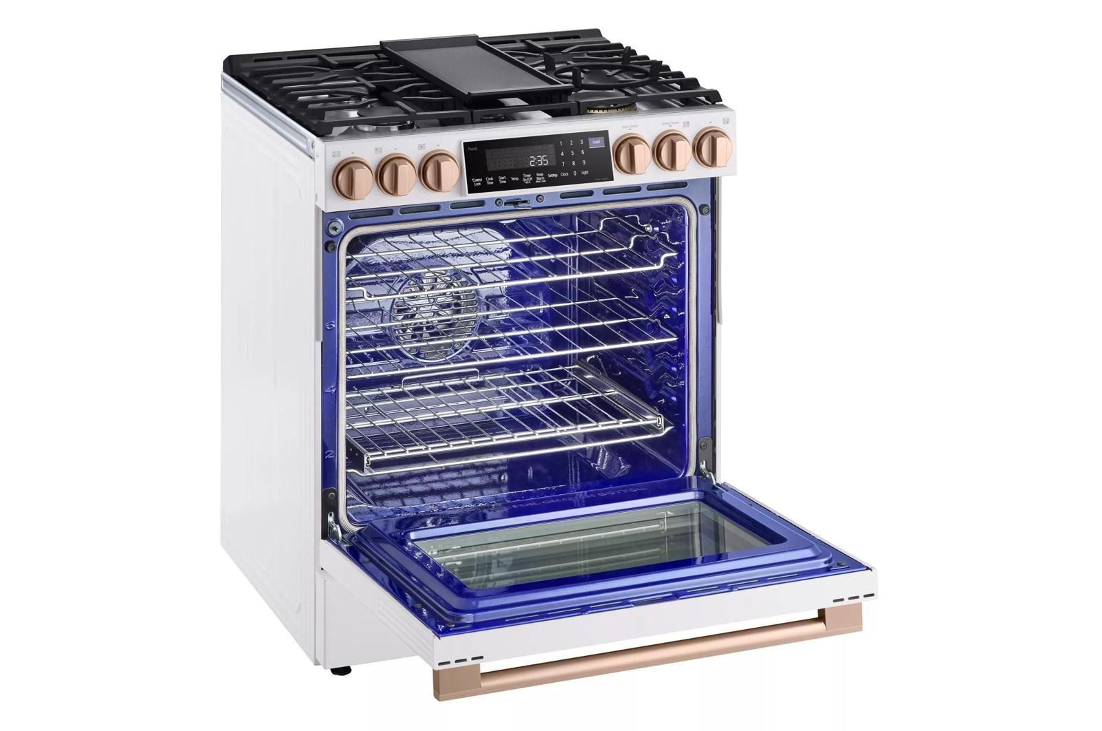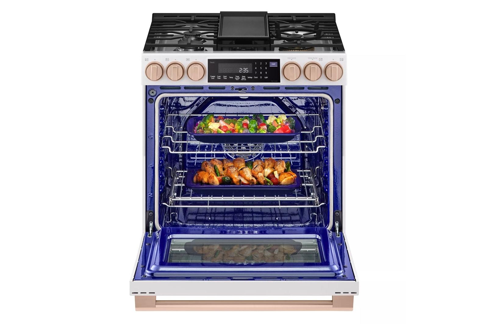 LG STUDIO ProBake Convection(R) ranges offer the best in convection technology for even baking results on every rack, every time. Inspired by pro-style ranges, this LG STUDIO range has the heating element on the back wall for optimal heat distribution. Enjoy consistent browning on top and bottom, with every cookie baked to perfection.