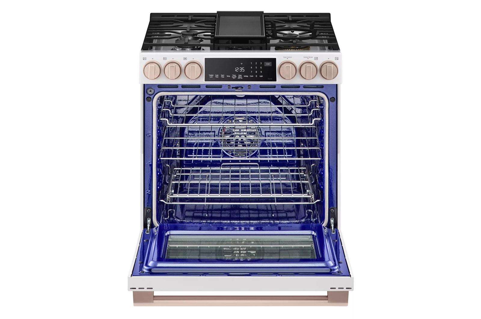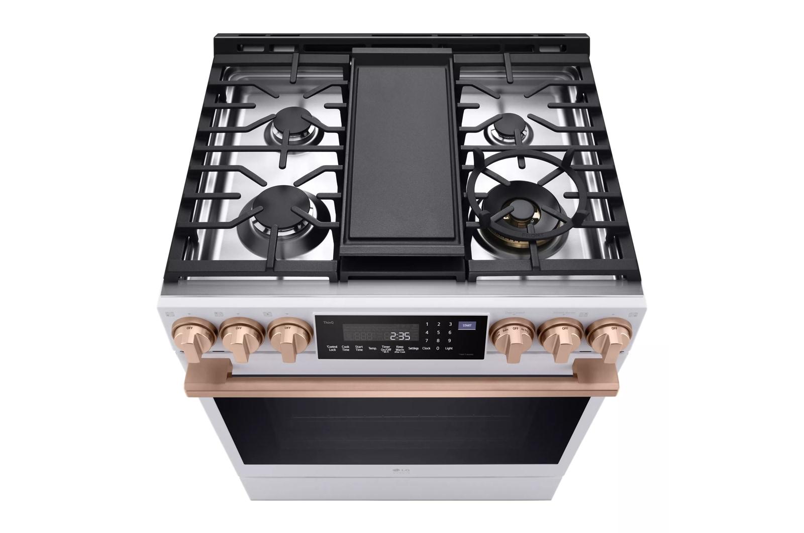 The ThinQ app offers control and convenience for smart LG appliances to help you simplify life and enjoy the comforts of home. Manage and monitor your range remotely, send cooking instructions to the oven with ThinQ Recipe or scan-to-cook , connect with Google or Alexa voice assistants, and access Smart Diagnosis, customer support, and more. ThinQ Care appliances send usage, maintenance, and diagnostic alerts to help them run smoothly. Learn more.
