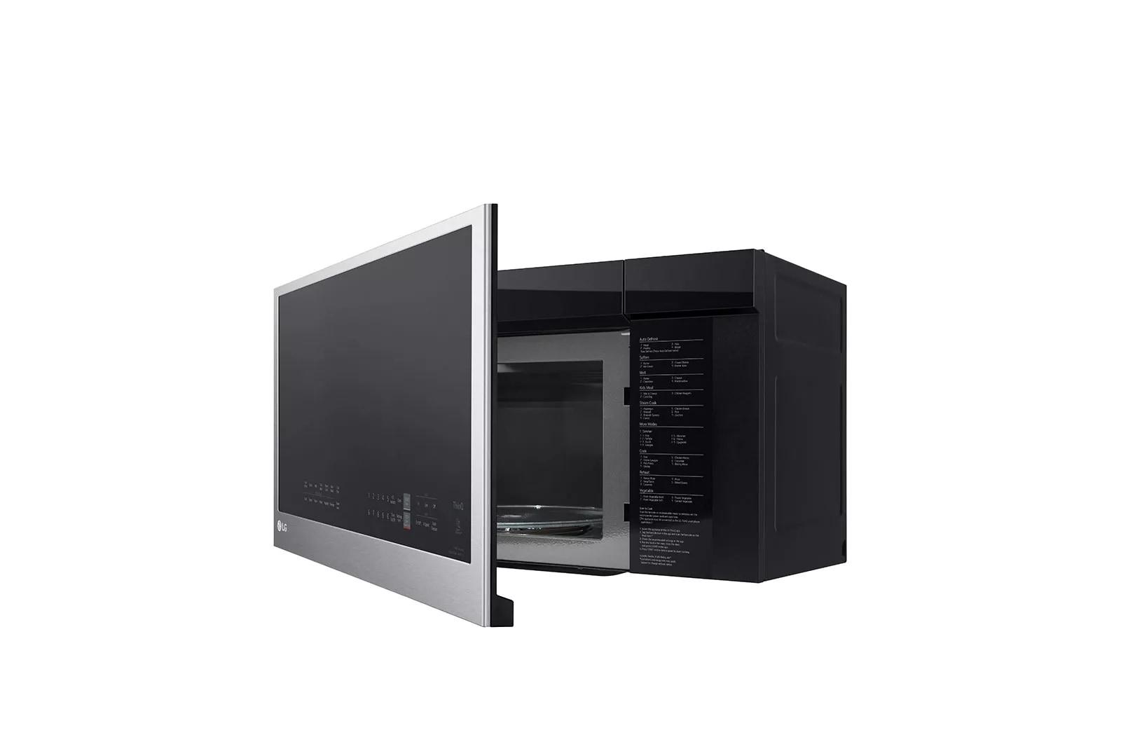 The LG MVEL2033F is a 2.0 cu. ft. over-the-range microwave designed to enhance your cooking experience. With a powerful 1,050-watt output and 400 CFM ventilation, it ensures efficient cooking and air circulation. The microwave offers six auto cook settings, including Auto Defrost, Soften, Melt, Simmer, Steam Cook, and Kids Meal, providing versatility for various cooking needs. Its Smart Wi-Fi connectivity allows you to control the microwave remotely via the ThinQ® app, and the Scan-to-Cook feature lets you scan barcodes on select ready-made meals to send cooking instructions directly to the microwave. The EasyClean® interior makes cleaning a breeze, and the PrintProof® finish resists fingerprints and smudges, maintaining a pristine appearance. With a modern design and intuitive SmoothTouch™ glass controls, the MVEL2033F is a stylish and functional addition to any kitchen.