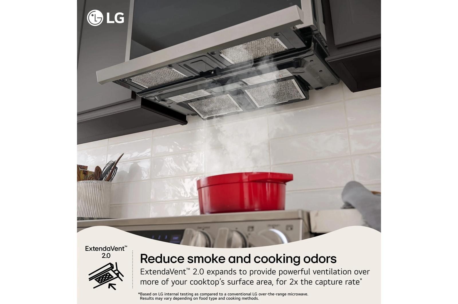 Reduce smoke and lingering cooking smells with LG's ExtendaVent(R) 2.0. Where most over-the-range microwaves only cover the rear of the cooktop, ExtendaVent(R) 2.0 expands to provide powerful ventilation over more of your cooktop for 2x the capture rate.