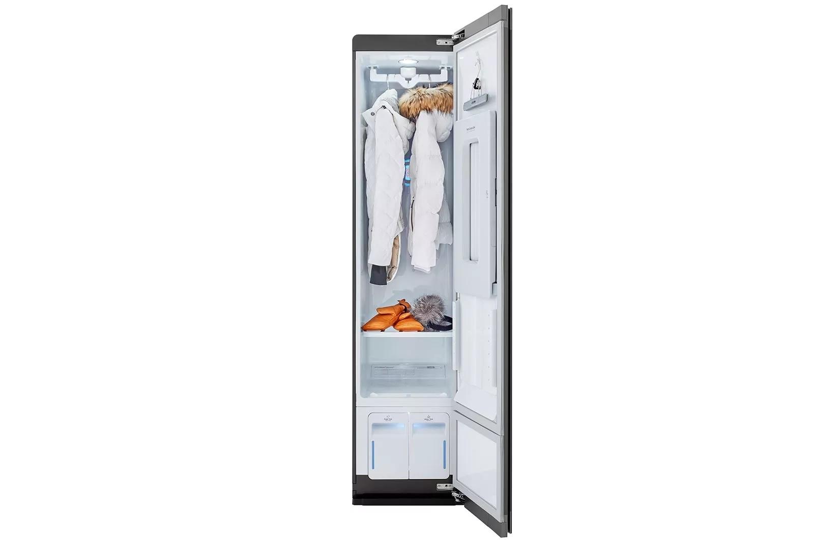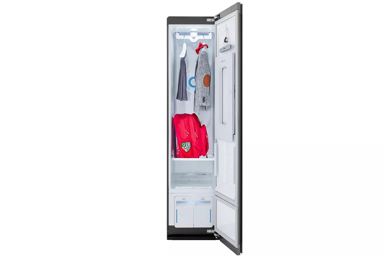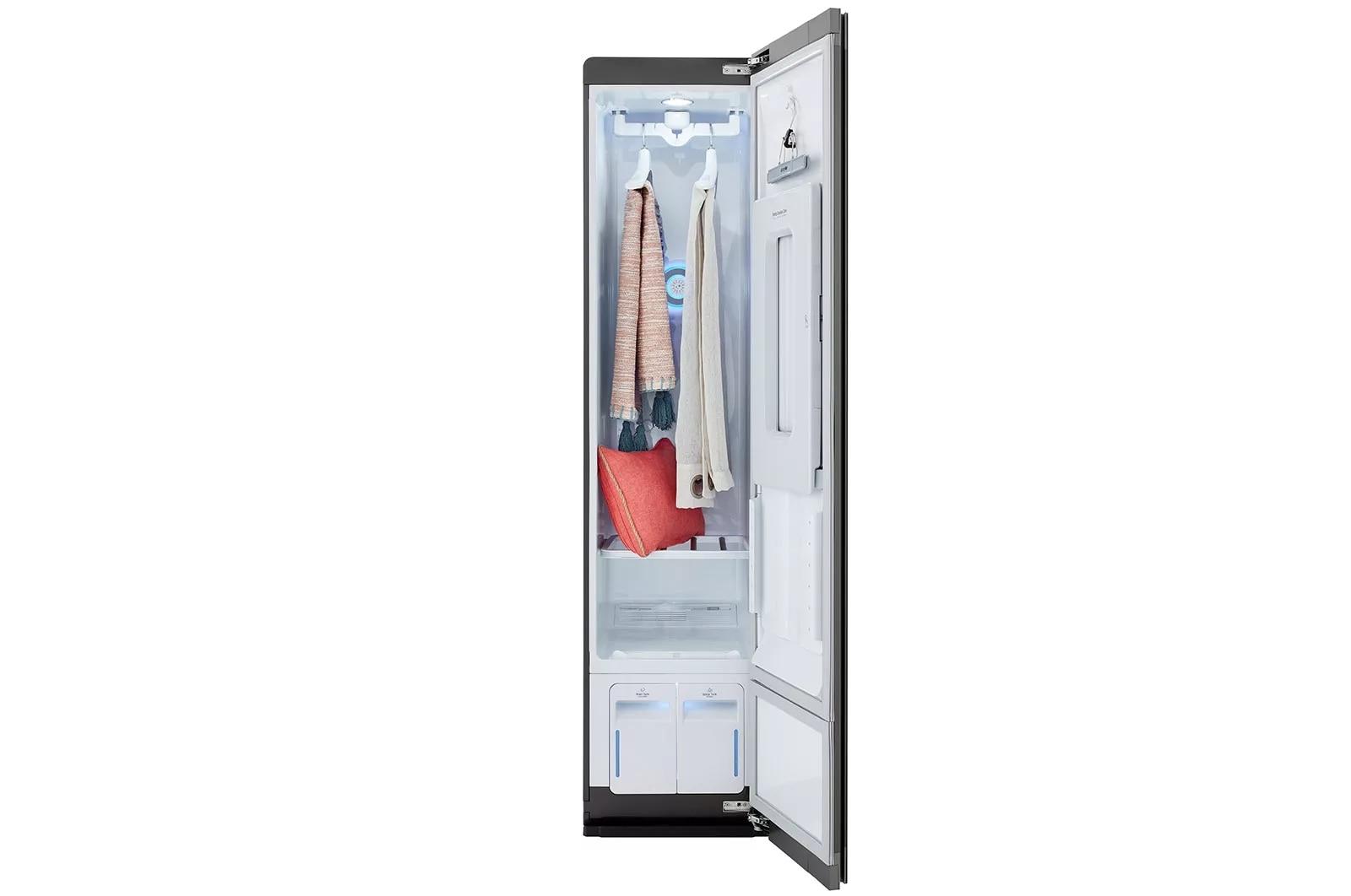 The brand + SKU: The LG S3MFBN Styler steam closet delivers premium garment care at home using gentle, hygienic steam. It refreshes clothes, removes odors, and reduces wrinkles with LG’s TrueSteam™ technology, while the 3-hanger capacity supports suits, dresses, and jackets simultaneously. The compact, wardrobe-style design fits discreetly in bedrooms or closets. Convenient smart features include SmartDiagnosis™ via ThinQ® for maintenance alerts and cycle tracking, silent operation for everyday use, and a removable water tank for easy filling. Featuring a stylish matte finish, an interior LED light, and a removable pants press, the S3MFBN offers a modern, efficient solution for garment care without ironing.
