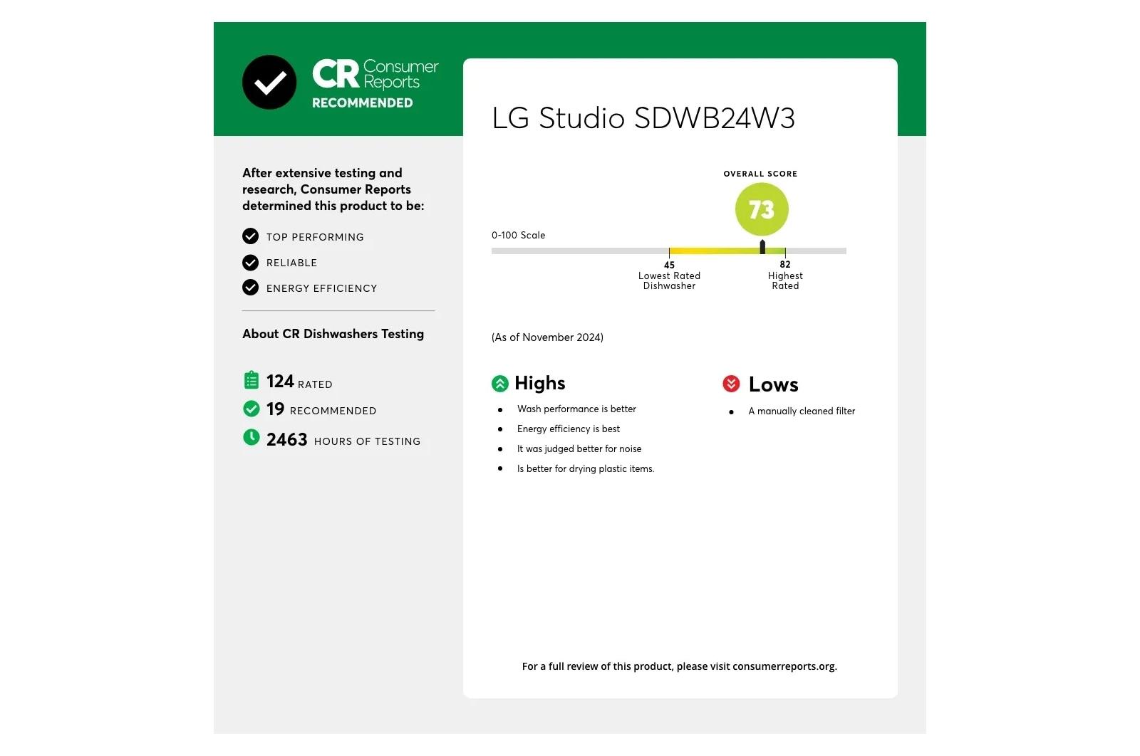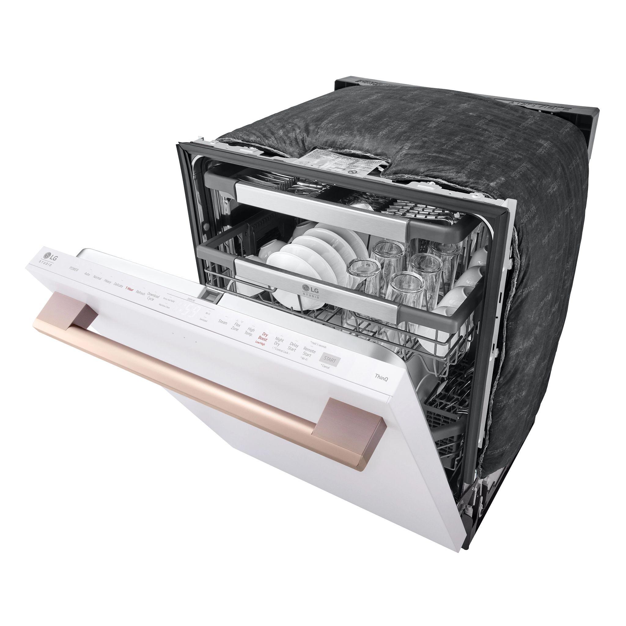The brand LG SDWB24W3 delivers high-end dishwashing performance in a stylish STUDIO Essence white design. With a full 15‑place setting capacity and adjustable, customizable racks, this dishwasher ensures efficient loading. Its advanced QuadWash® Pro multi-spray arm system provides powerful, corner-to-corner cleaning, while TrueSteam™ technology effectively reduces spots and sanitizes. Smart ThinQ® connectivity lets you monitor cycles and receive notifications remotely, while ultra-quiet LoDecibel™ operation ensures peaceful operation. Featuring premium touches like a stainless steel tub, built-in detergent dispenser, and multiple cycle options—including Heavy, Express, and Eco—the SDWB24W3 combines aesthetics, convenience, and superior cleaning in one integrated appliance.