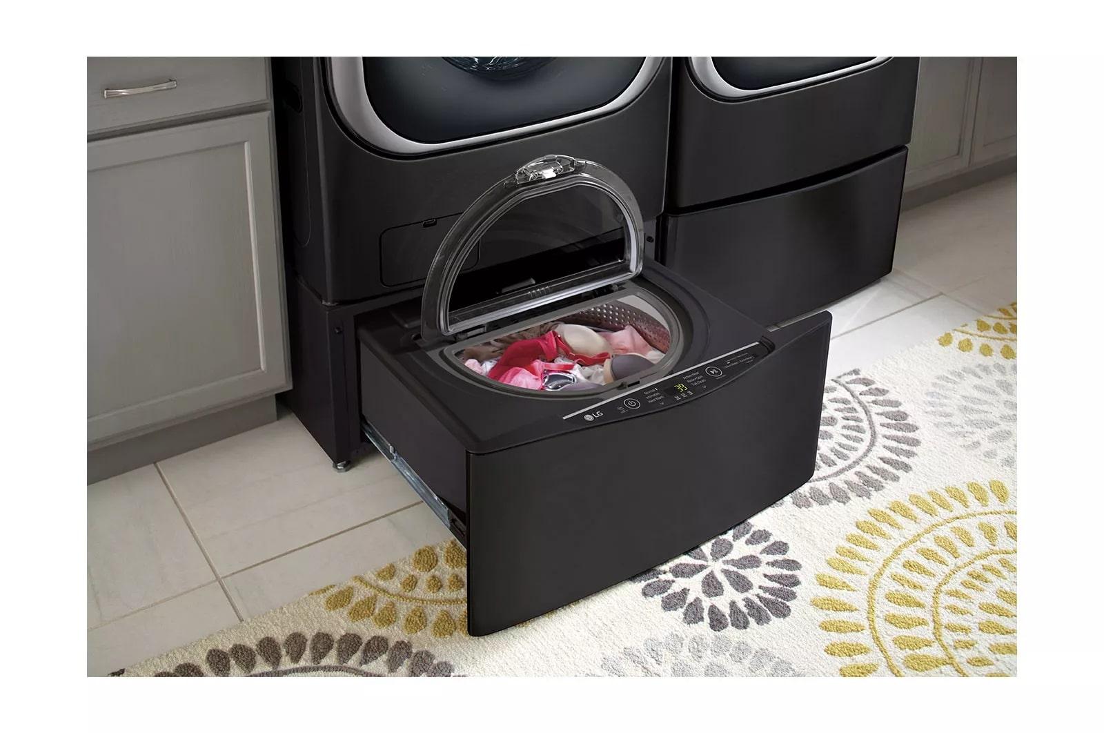 The brand + SKU: The LG WD200CB SideKick pedestal washer offers an innovative solution for multitasking your laundry routine. Built to work in tandem with compatible LG front-load washers, this 1.0 cu. ft. washer fits neatly beneath the main unit as part of the TWINWash™ system. It's perfect for handling smaller, more delicate loads without interrupting your main cycle. The direct drive motor ensures reliable and quiet operation, while SmartDiagnosis™ helps troubleshoot issues quickly and efficiently. With its black stainless steel finish, the WD200CB adds both function and a sleek aesthetic to your laundry setup. Whether it’s activewear, delicates, or lightly soiled items, the LG SideKick lets you get more done in less time with tailored care.