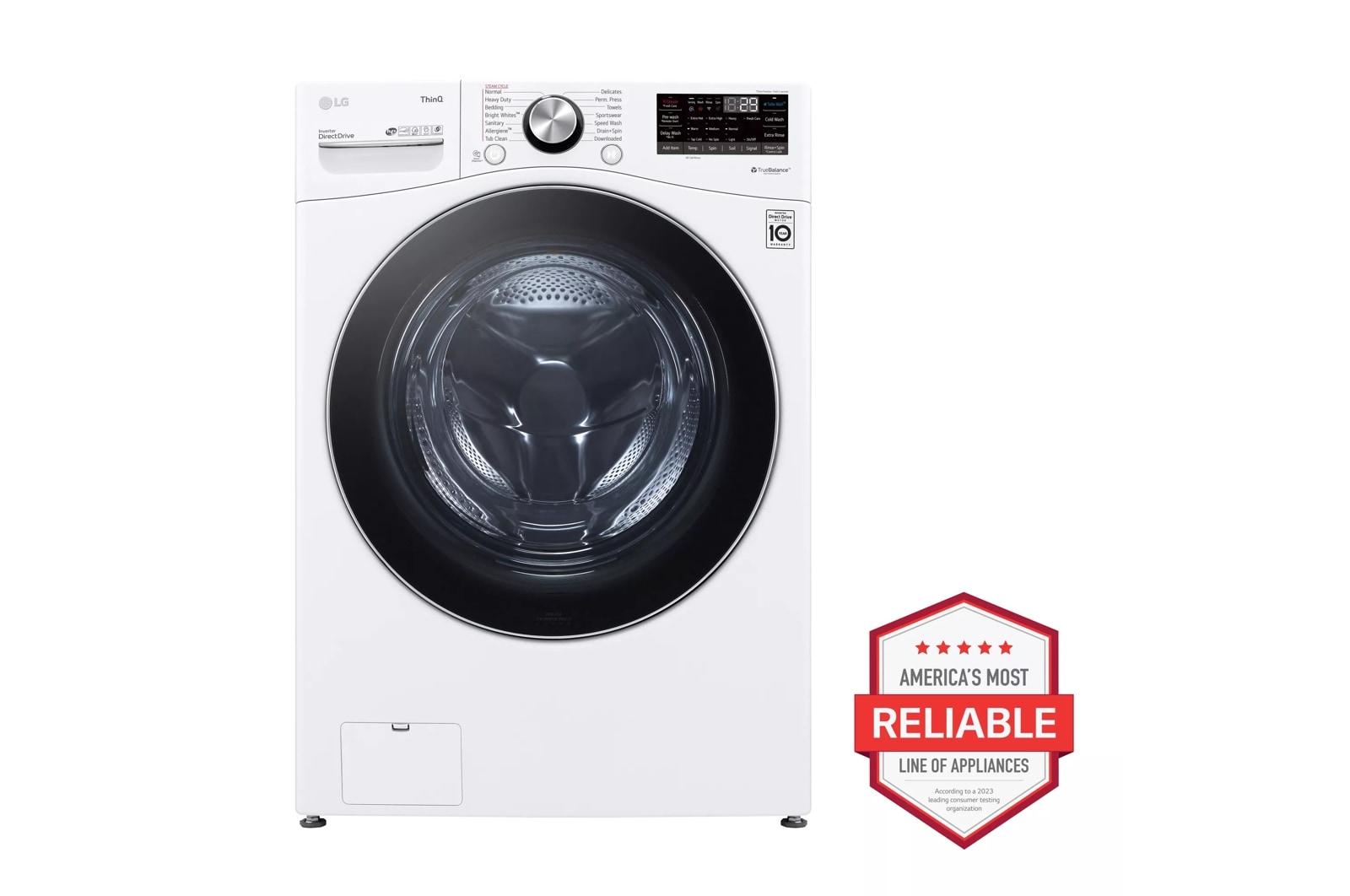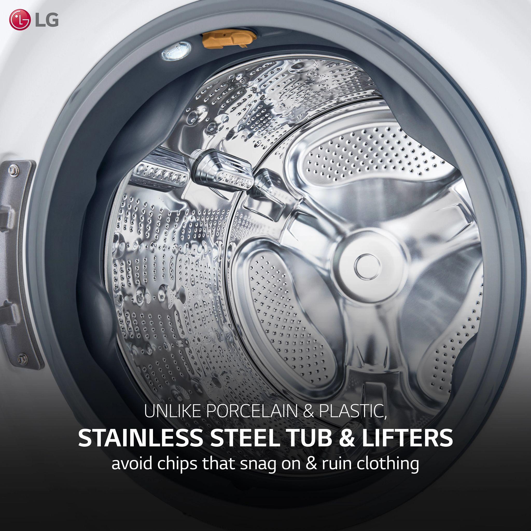 The brand LG WM4200HWA is a premium 27″ smart front‑load washer designed to simplify laundry day with powerful cleaning performance and intelligent features. It boasts a spacious 5.0 cu ft Mega Capacity stainless steel drum for large or bulky loads, paired with TurboWash™ 360° to power clean in under 30 minutes. The inverter direct drive motor ensures quiet, energy‑efficient operation, while built‑in AI and ThinQ® app Wi‑Fi connectivity facilitate remote start, cycle monitoring, and smart pairing with compatible LG dryers. Additional features include an Allergiene® steam cycle certified by AAFA for deep cleaning, ColdWash™ technology for fabric care, and a LoDecibel™ anti‑vibration system for ultra‑quiet washes—making this washer both high-performing and convenient. :contentReference[oaicite:0]{index=0}