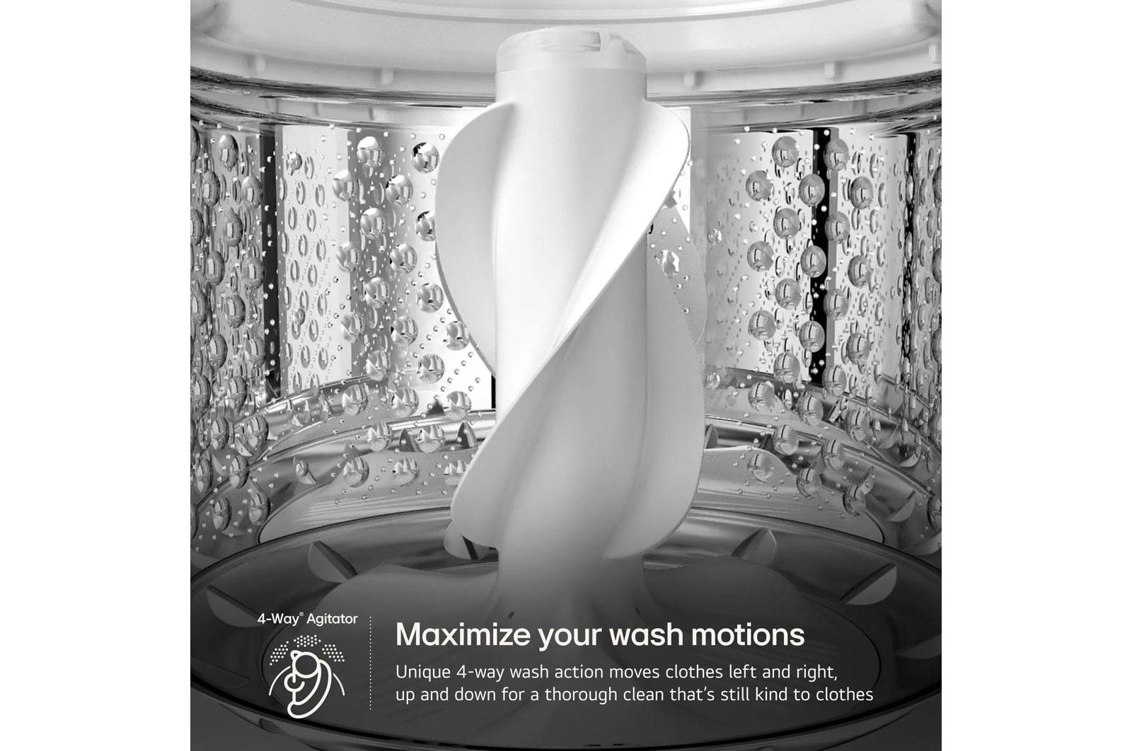 Specially designed fins create a unique 4-way wash action that moves clothes left and right, up and down for a thorough clean that's still kind to clothes.