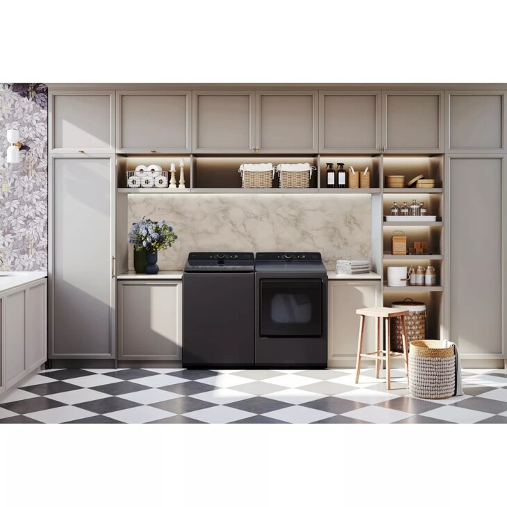 The LG WT8405CB is a powerful, high-capacity 27-inch top load washer engineered for large households and advanced fabric care. With a spacious 5.5 cu. ft. Mega Capacity, it allows you to tackle more laundry in fewer loads. The washer features TurboWash3D™ technology, delivering a powerful yet gentle clean in under 30 minutes by using a dynamic water flow system. The Smart Wi-Fi connectivity lets you start, stop, and monitor your laundry from anywhere via the LG ThinQ® app, and it's compatible with Google Assistant and Amazon Alexa for voice control. The ColdWash™ option uses cold water and enhanced wash motions for energy-efficient cleaning without sacrificing performance. Additional highlights include 6Motion™ Technology, Deep Fill option, Stainless Steel TurboDrum™, and TrueBalance™ Anti-Vibration System for a quiet wash. The premium Black Steel finish brings a sleek, modern aesthetic to any laundry room.