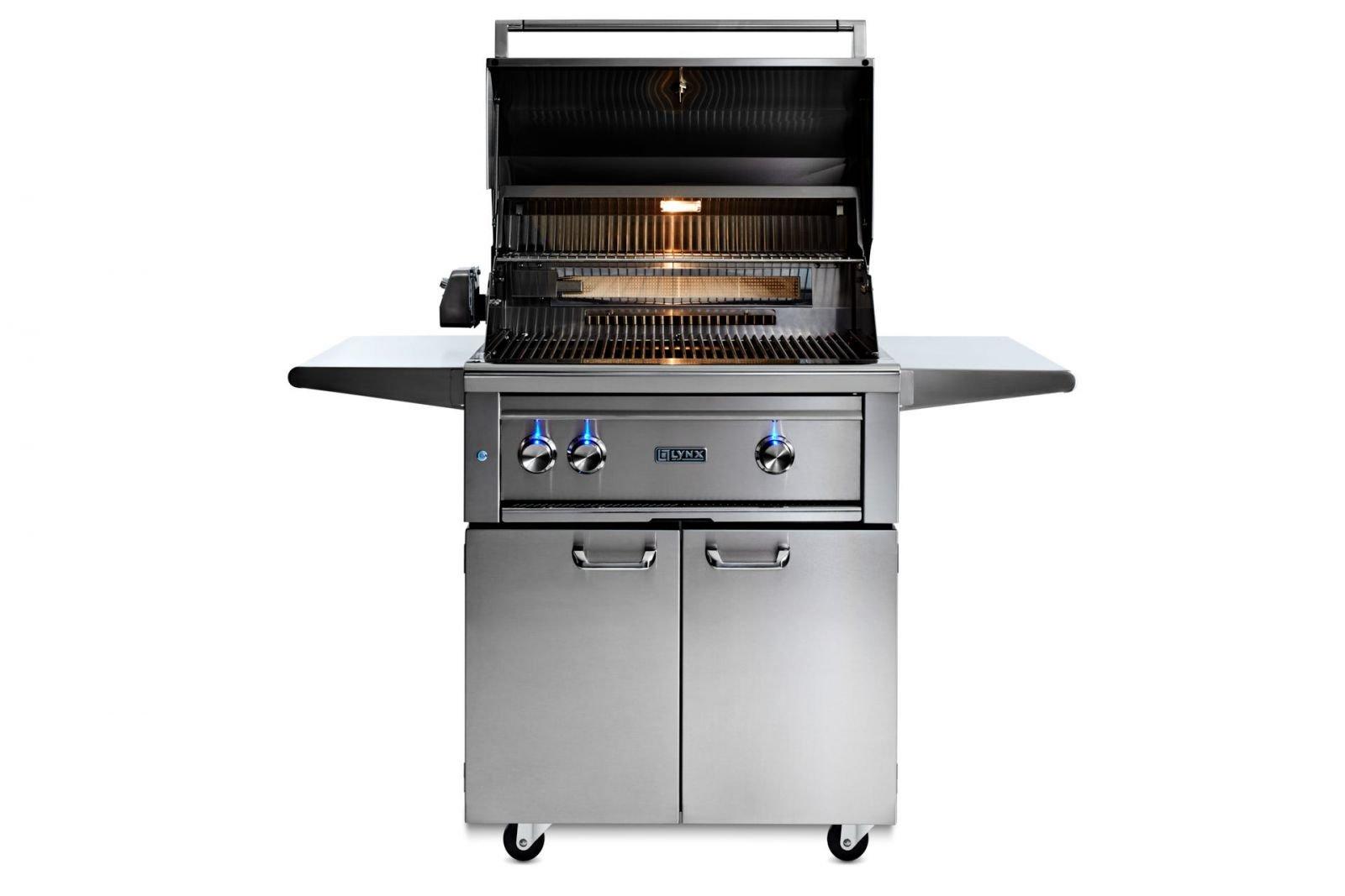 The brand Lynx L30TRFNG delivers professional grilling power in a freestanding 30″ format designed for outdoor cooking enthusiasts. Equipped with three commercial-grade 9 mm stainless steel tube burners totaling 54,000 BTU output, plus a stainless steel smoker tray, it ensures precise heat control and searing performance. The heavy-duty cast iron cooking grid provides even heat distribution, and the removable warming rack expands cooking capacity. Featuring integrated LED control knob lighting and a sturdy stainless steel cabinet with frost-resistant insulation, this grill is built to perform in any climate. Other professional features include a rotisserie kit ready design, drip tray for easy cleanup, and tool hooks and towel bar for convenience, making the Lynx L30TRFNG a fully equipped outdoor kitchen centerpiece.