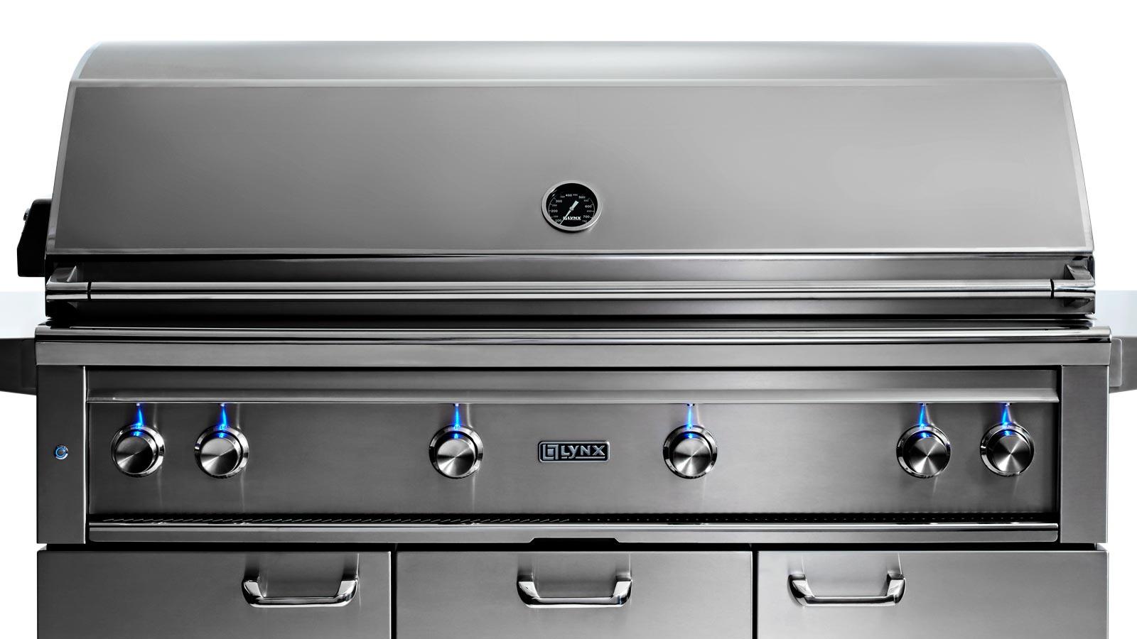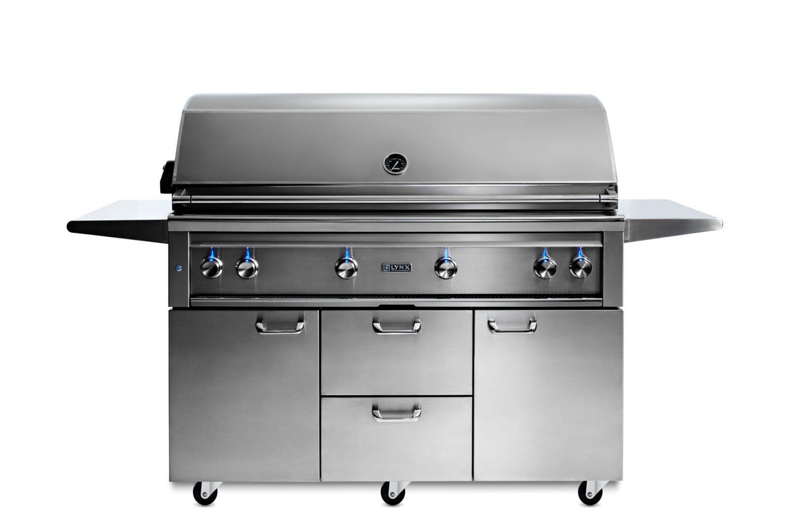 The brand Lynx L54TRFLP combines exceptional power and precision-driven features in a 54‑inch built‑in grill ideal for gourmet outdoor kitchens. Offering a massive 1555 sq in. cooking area (1,110 sq in. main + 445 sq in. secondary), it features a potent Trident™ infrared burner delivering adjustable searing heat from 300 °F to 1,000 °F, alongside three ceramic burners that total 98,000 BTU for even, consistent cooking :contentReference[oaicite:1]{index=1}. The grill includes a dual‑position rotisserie with a heavy‑duty 3‑speed motor and a rear infrared burner (28,000 BTU) for perfect slow roasting :contentReference[oaicite:2]{index=2}. Crafted from seamlessly welded 304 stainless steel, it features hot‑surface ignition, blue‑LED control knobs, dual halogen lighting, a built‑in temperature gauge, and a generous smoker box—all built for durability and superior grilling experience :contentReference[oaicite:3]{index=3}.