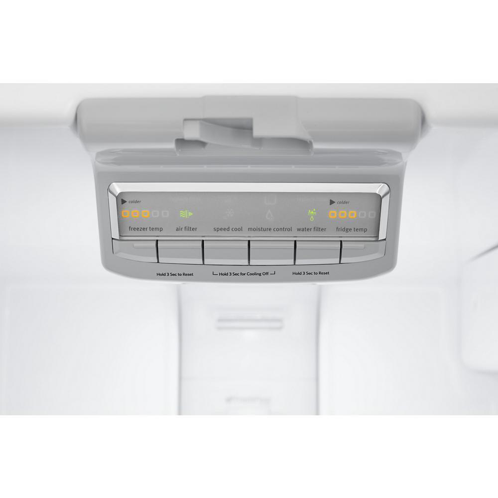 This Maytag(R) french door refrigerator is made with heavy-duty components and features that deliver the right kind of cold exactly where it's needed. It's available in fingerprint resistant stainless steel to keep this fridge looking as good on the outside as it works on the inside. The temperature-controlled Wide-N-Fresh(TM) deli drawer provides the perfect place to keep deli items so they stay fresh longer. And when it comes to durability, this french door refrigerator has stainless steel handles to give you something hardy to grab on to, while the 10-year limited parts warranty on the compressor means you can count on it hold the cold for years.