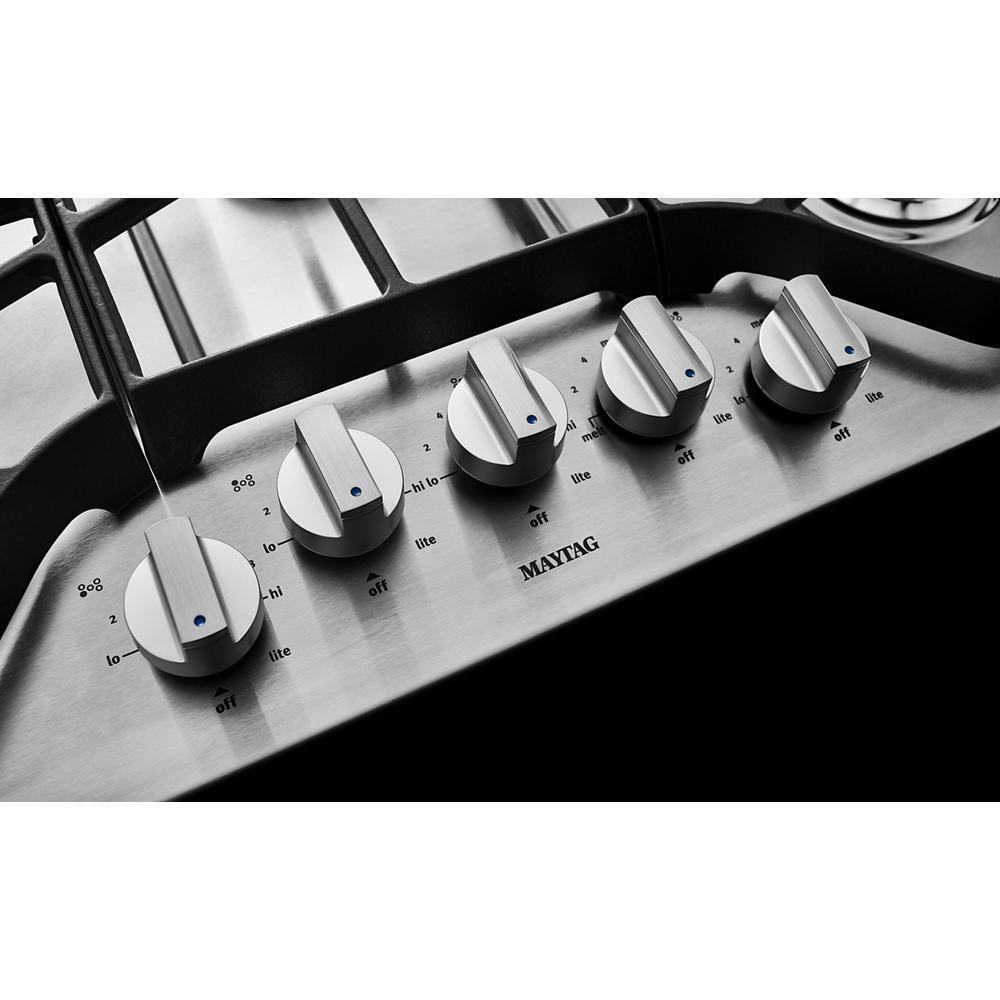 The Maytag MGC9536DS is a 36-inch gas cooktop designed to deliver professional-grade cooking results. It features 5 sealed burners, including a Power Burner that offers high heat for fast boiling and searing. The seamless stainless steel design ensures easy cleaning and complements any modern kitchen. The sealed burners help contain spills for a cleaner cooktop, while the precise flame control allows for versatility in cooking, whether you’re simmering sauces or quickly sautéing vegetables. This cooktop is built for durability, with a sturdy construction that supports heavy cookware. The Maytag MGC9536DS brings both performance and style to your kitchen, making it perfect for those who demand high-quality cooking tools.