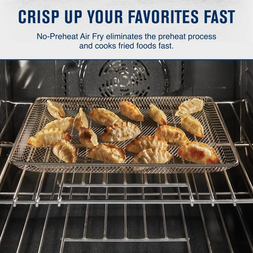 | Oven Selections | Air Fry; Audible Signal; Bake; Broil; Cancel/Off; Clock; Control Lock; Cook Time Indicator; Delay Start; Keep Warm/Warm Hold; Rapid Preheat; Sabbath Mode; Stop Time; Timer |