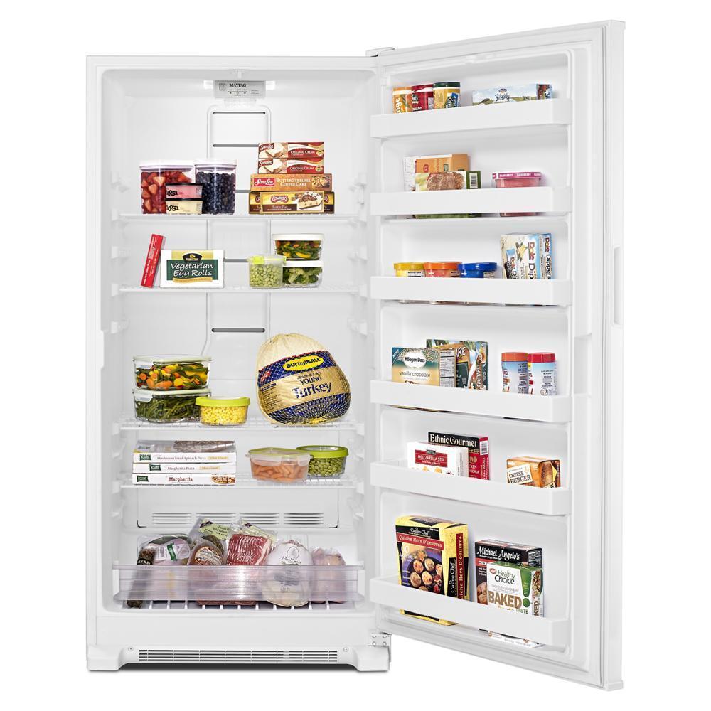 The Maytag MZF34X20DW Upright Freezer provides an ideal solution for households needing additional frozen storage with a generous 20 cu. ft. capacity. Designed with Frost-Free Defrost technology, this model eliminates the hassle of manual defrosting while maintaining consistent performance. The Fast Freeze option rapidly drops the temperature to seal in freshness of newly stored items. Integrated LED lighting ensures clear visibility, while the Reversible Door offers flexible installation in any room configuration. With a durable design backed by the reliability of Maytag, this upright freezer delivers both practicality and long-term convenience.
