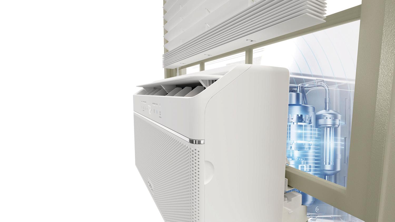 (BULL) 3-in-1 Comfort: Cools, Dehumidifies, and Ventilates. (BULL) Control from anywhere via SmartHome App, Apple Watch, and voice assistant devices. (BULL) Variable Speed Inverter Technology is up to 45% more energy efficient. (BULL) Ultra-quiet window AC unit effectively minimizes compressor noise, as low as 32 dBA. (BULL) Monitor and optimize energy consumption using the SmartHome App with AI ECO mode. (BULL) FlashCool Mode delivers cooling that is 35% faster than standard operation. (BULL) 12X Quieter than traditional air conditioning units.