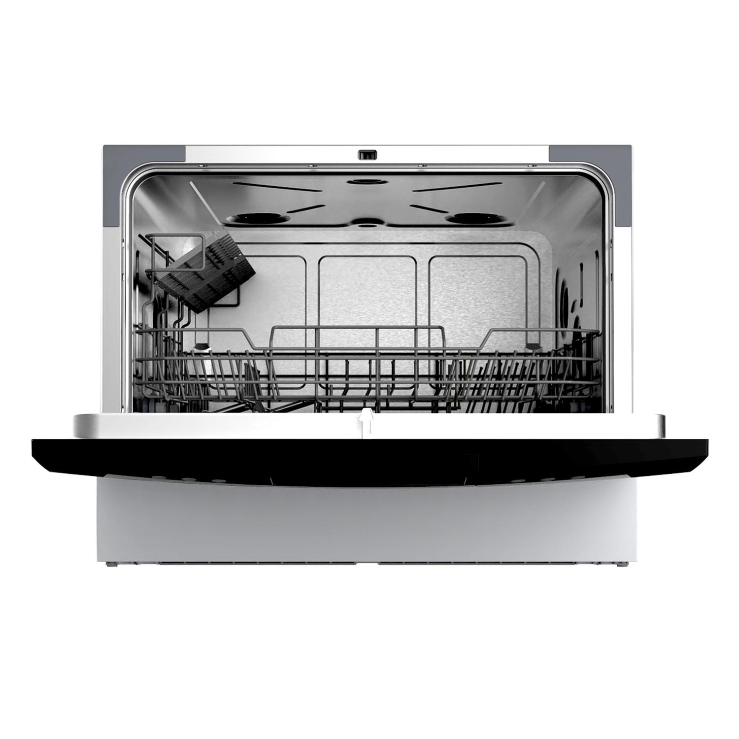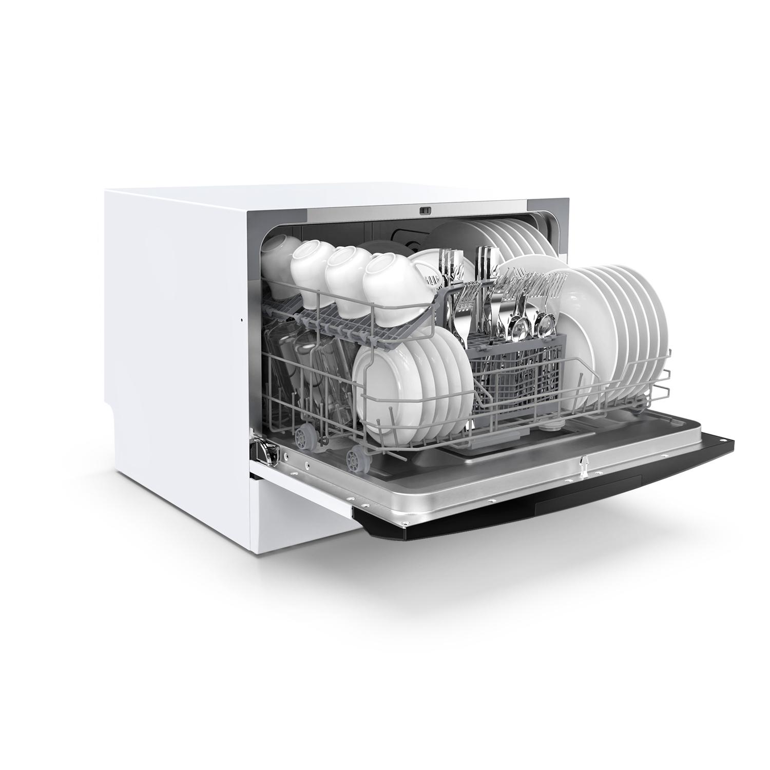 - This compact dishwasher holds up to 70 pieces of tableware per cycle.