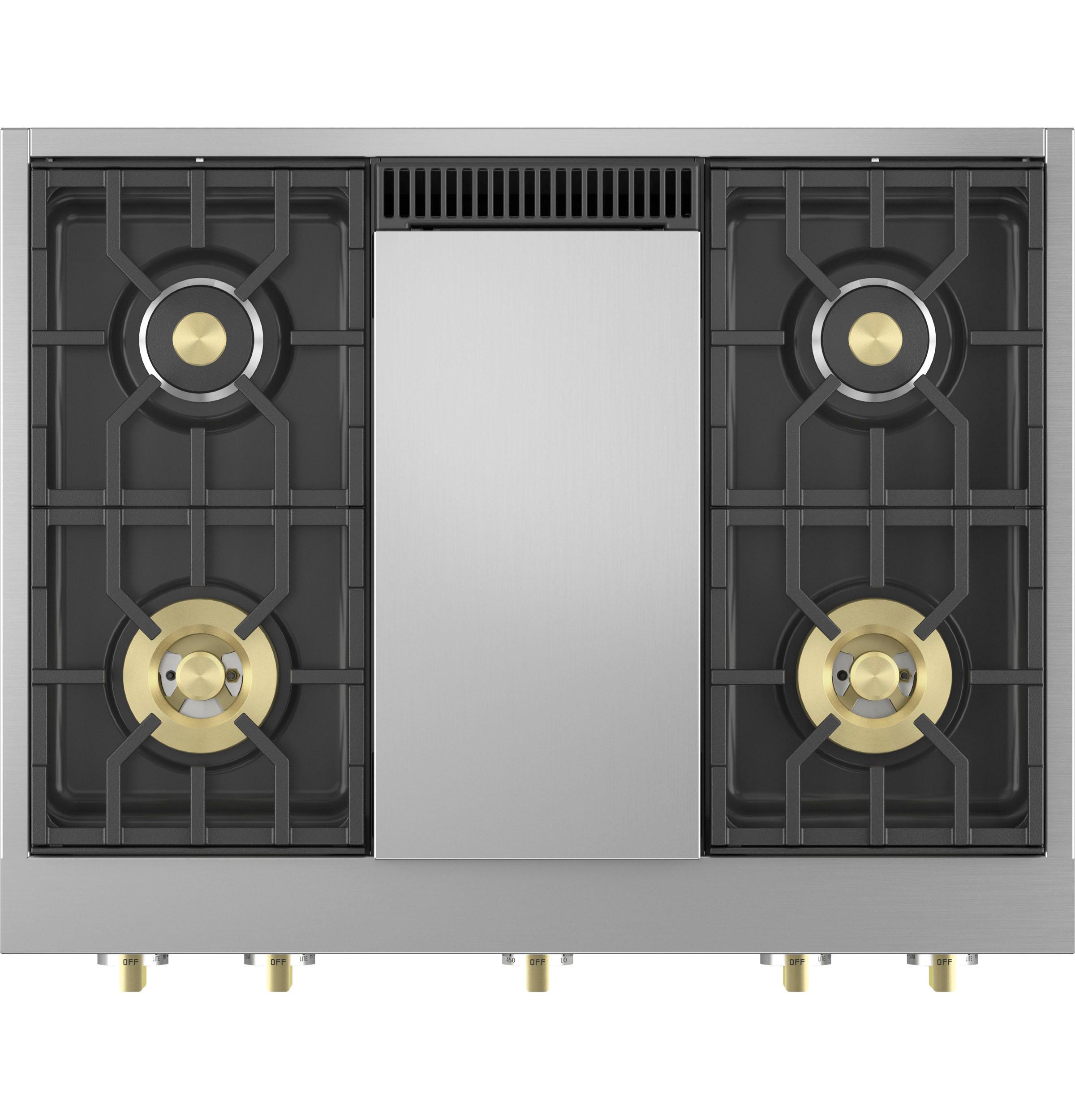 Delivering exceptional cooking flexibility, the two 23,000-BTU multi-ring brass burners and dual-stack burners offer a range of heat settings, from gentle simmer to intense flame